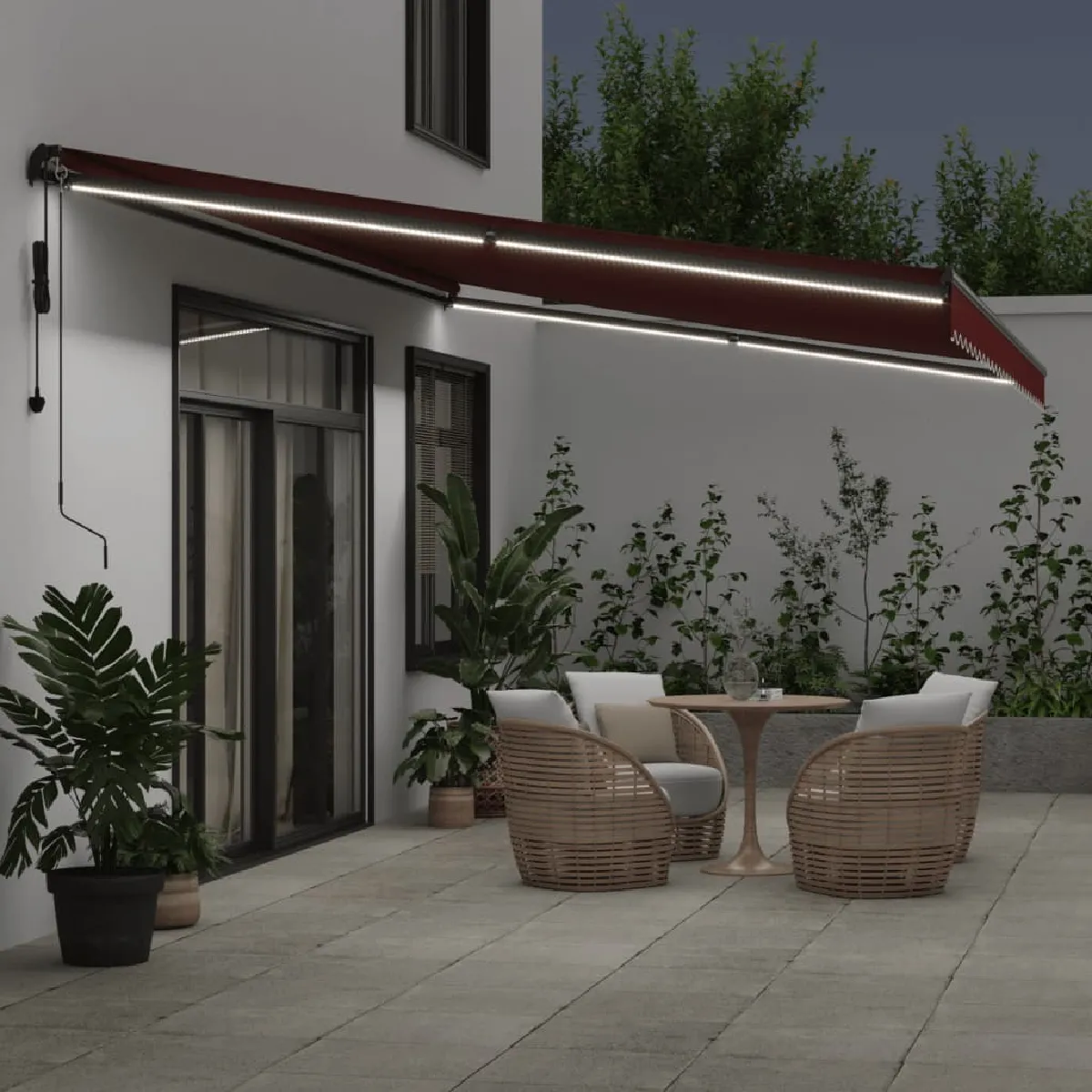 vidaXL Auvent rétractable automatique avec LED bordeaux 500x350 cm |