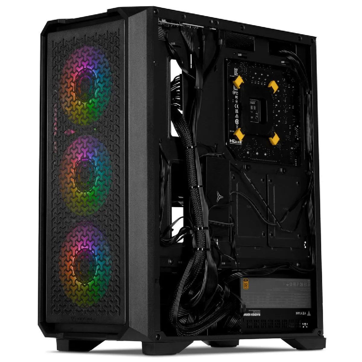 Le stockage s'appuie sur un SSD NVMe Gen 4 de 1 To, accélérant le lancement des jeux, des logiciels et de Windows 11 Professionnel. L'alimentation 650 W 80+ Gold contribue à une distribution électrique efficace. Le châssis Yeyian Vault propose un éclairage RGB discret et personnalisable et une conception robuste adaptée à un usage quotidien. Avec 2 barrettes installées et 2 emplacements mémoire libres, la plateforme reste évolutive pour de futurs besoins, tout en préservant la compatibilité avec la carte mère B860 DDR5 WiFi.