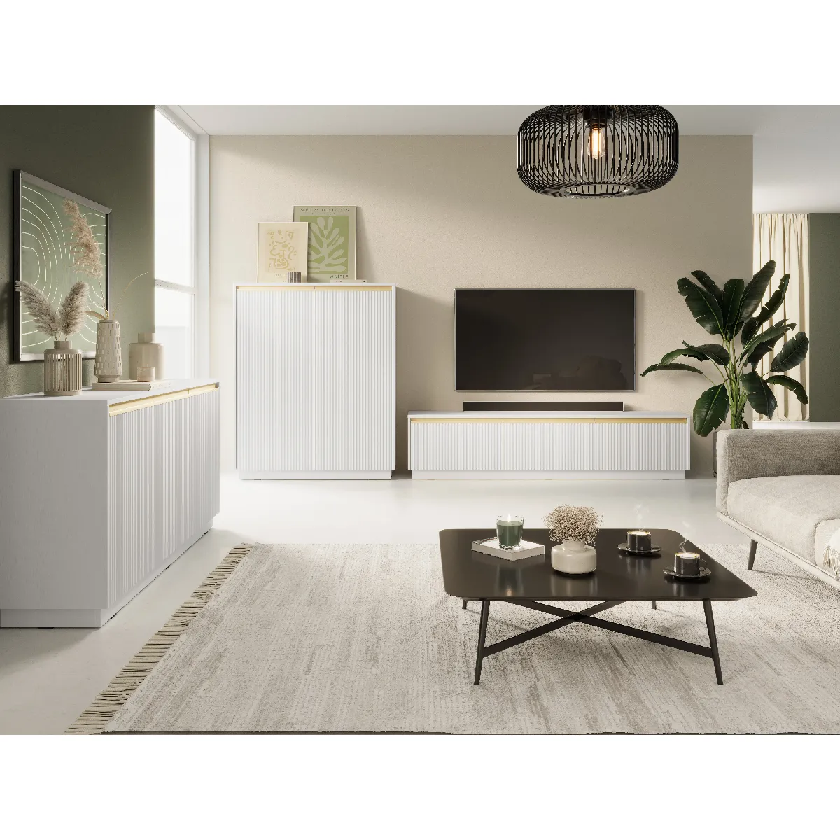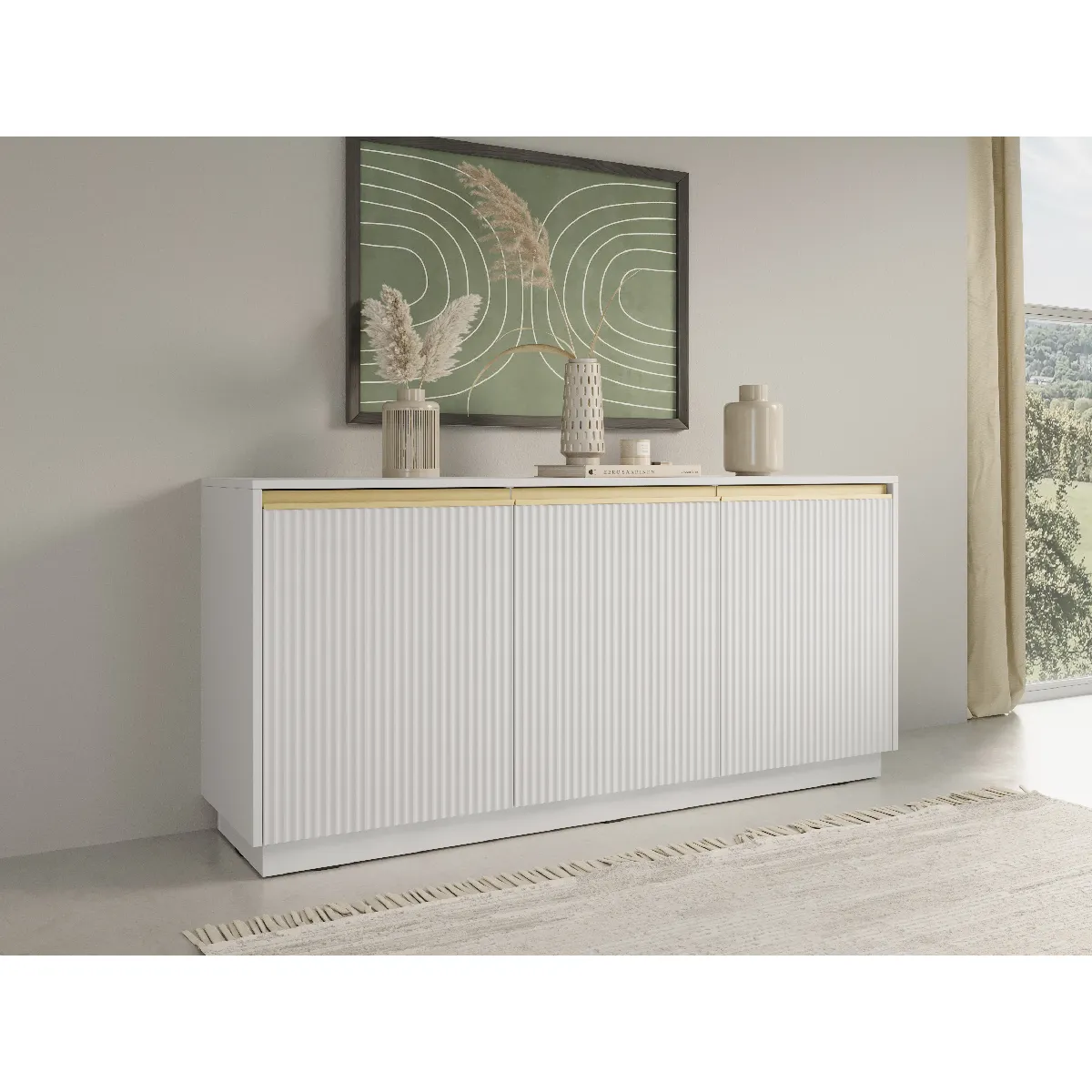 3XELIVING Commode : 3 portes, 6 étagères, Blanc Mat, 153,4 cm x 71,6 cm x 39 cm |