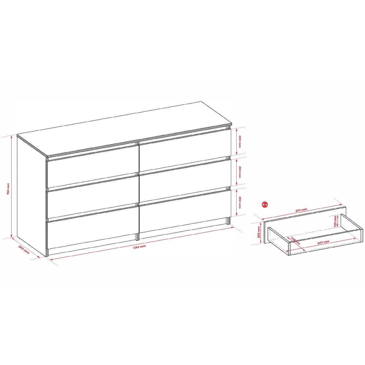 6 tiroirs |