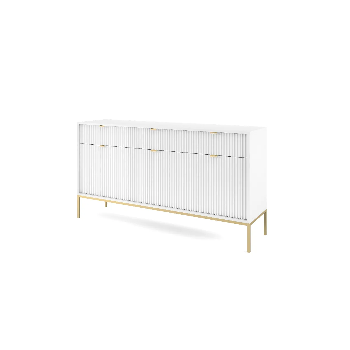 3XELIVING Commode : 3 Tiroirs, 3 Portes, Blanc, or, 154 x 83 x 39 cm, poignées dorées,