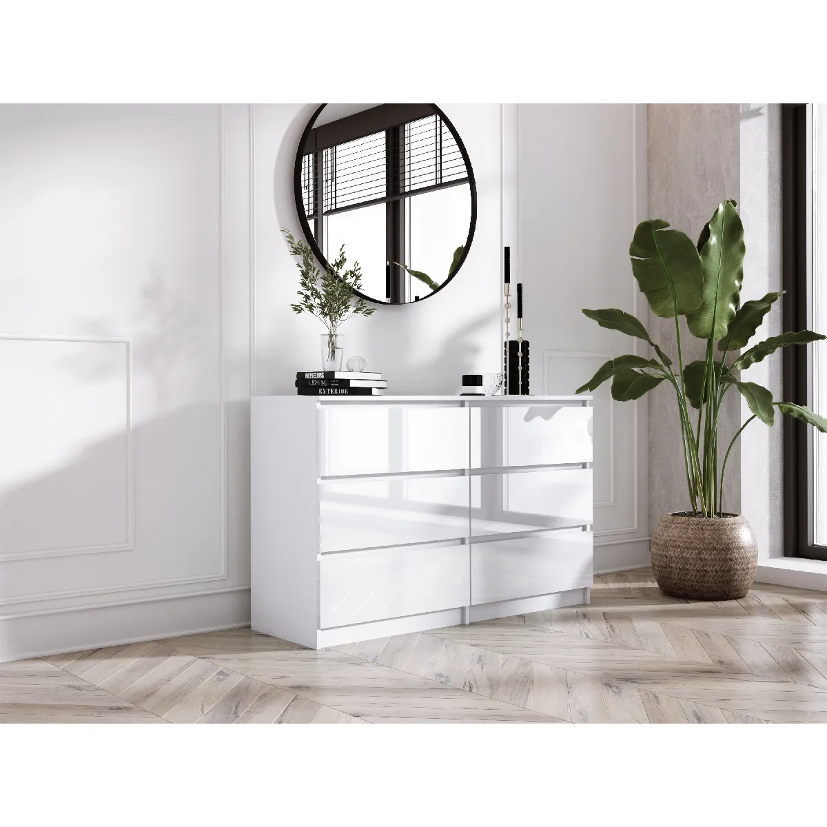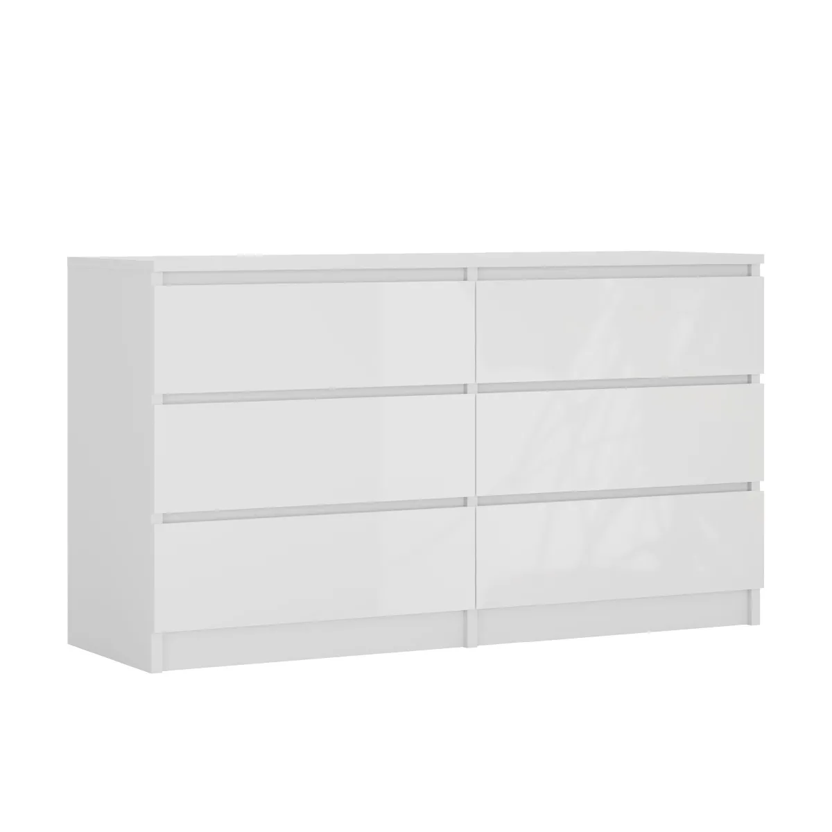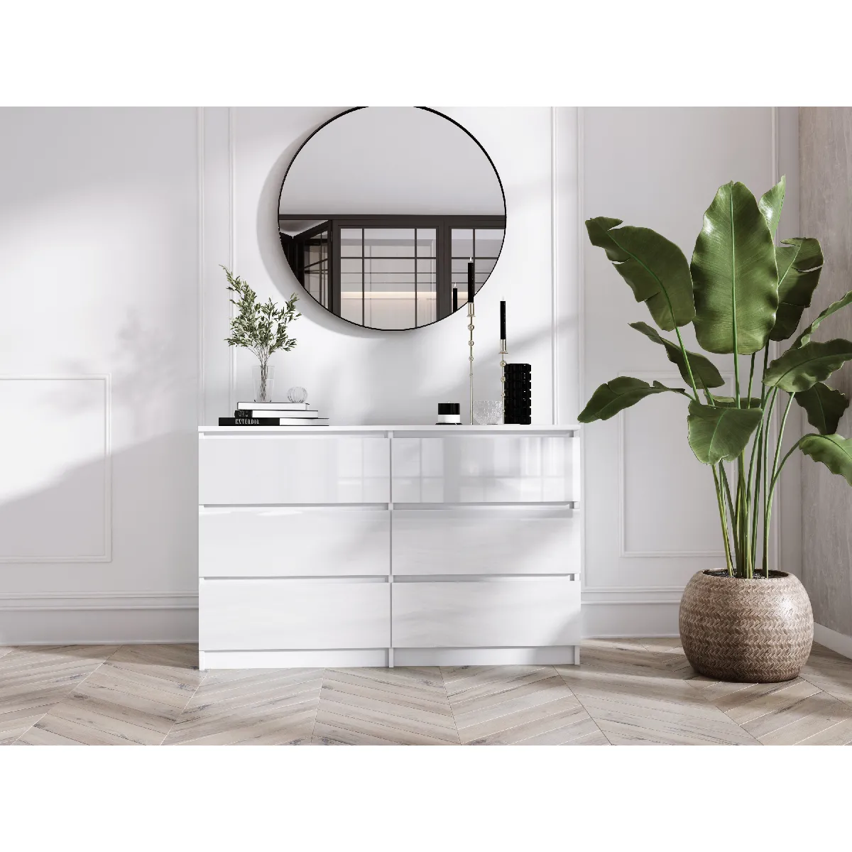 3XELIVING Commode 6 Tiroirs : Blanc Mat / Blanc Brillant, 138 x 39 x 79 cm