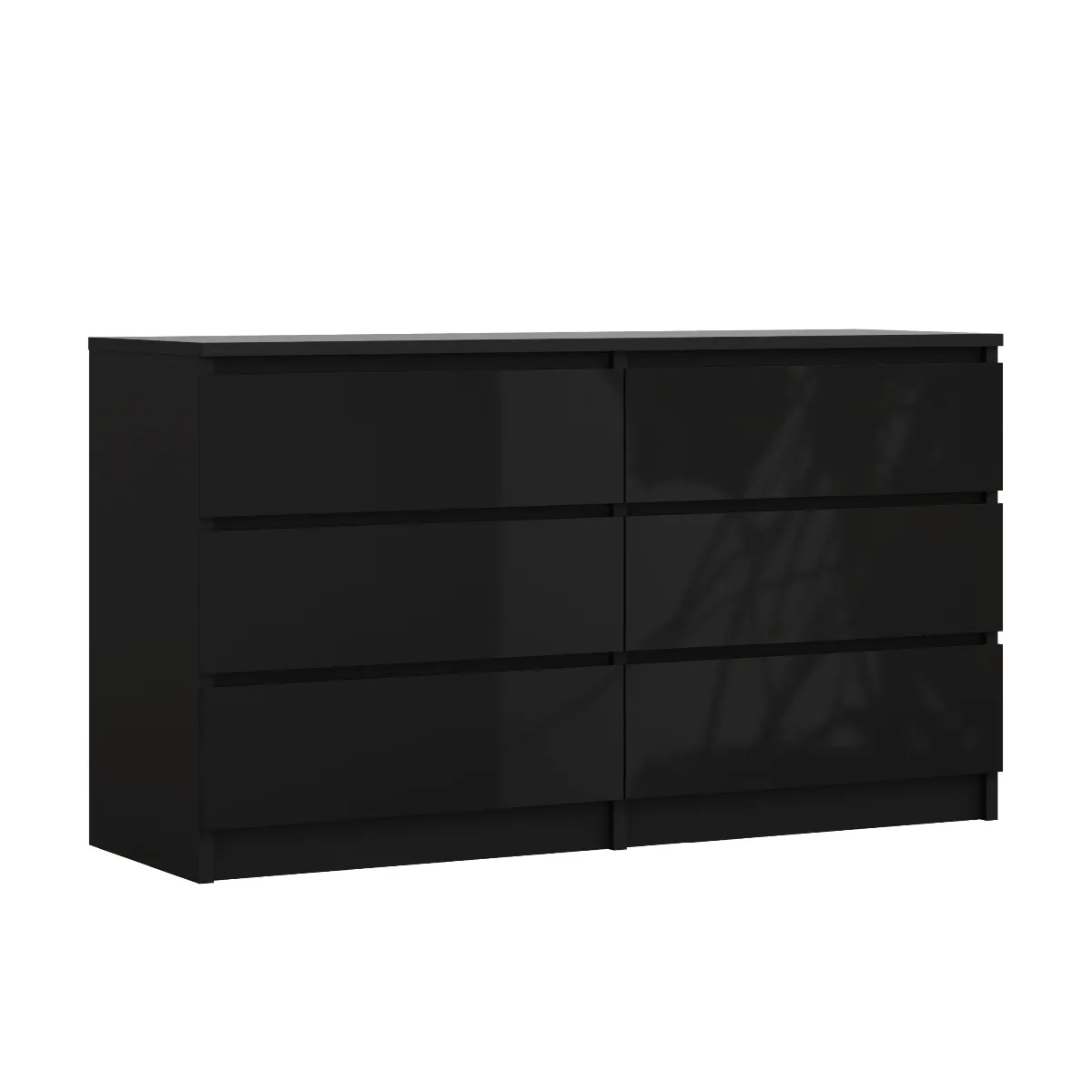 3XELIVING Commode 6 Tiroirs : Noir Mat / Noir Brillant, 138 x 39 x 79 cm |