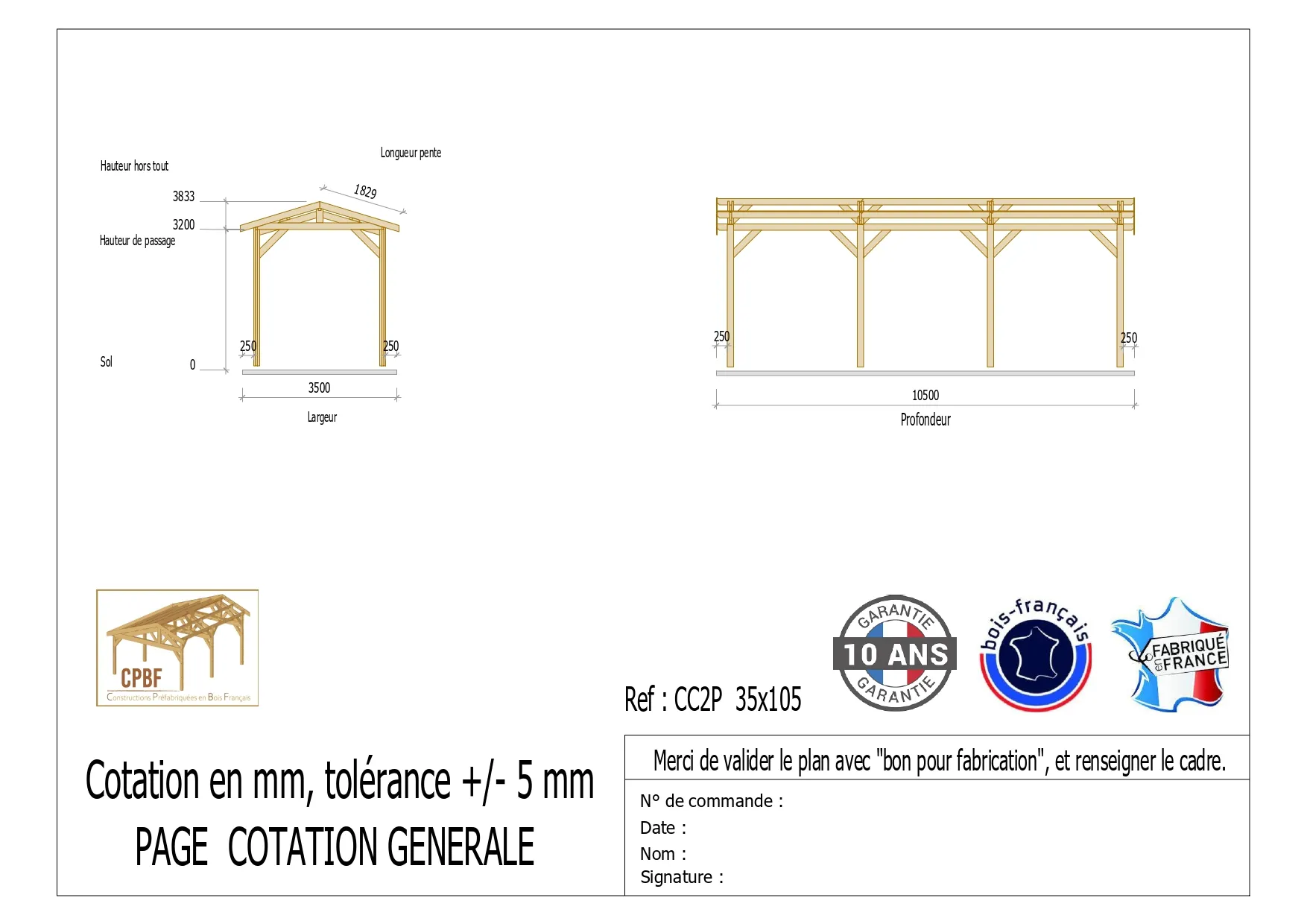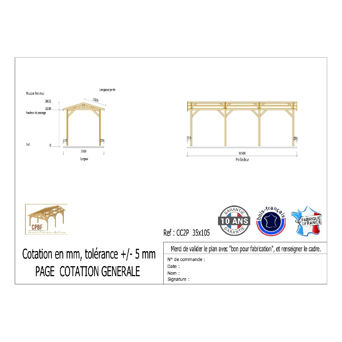 Commentaire vendeur : Charpentes fabriquées par l’entreprise CPBF qui est implantée dans le sud-ouest en Lot et Garonne (47). Bois DOUGLAS issu de nos forêts françaises. Dimensions et descriptif sous format photo ci-dessus. Charpentes traditionnelles moisées. Fourni avec : dossier technique complet (fiches conseils, fiches de montage, plan de préparation du sol), quincaillerie d’assemblage. Possibilité de fermer totalement ou partiellement les côtés de votre abri par vos soins. IMPORTANT : Pour le meilleur tarif, la livraison s'effectue en poids lourd 38T (accessibilité validé auprès des services techniques de la commune de livraison) et le déchargement est réalisé par vos soins, dé-palettisation (environ 30 minutes, prévoir 3 personnes).