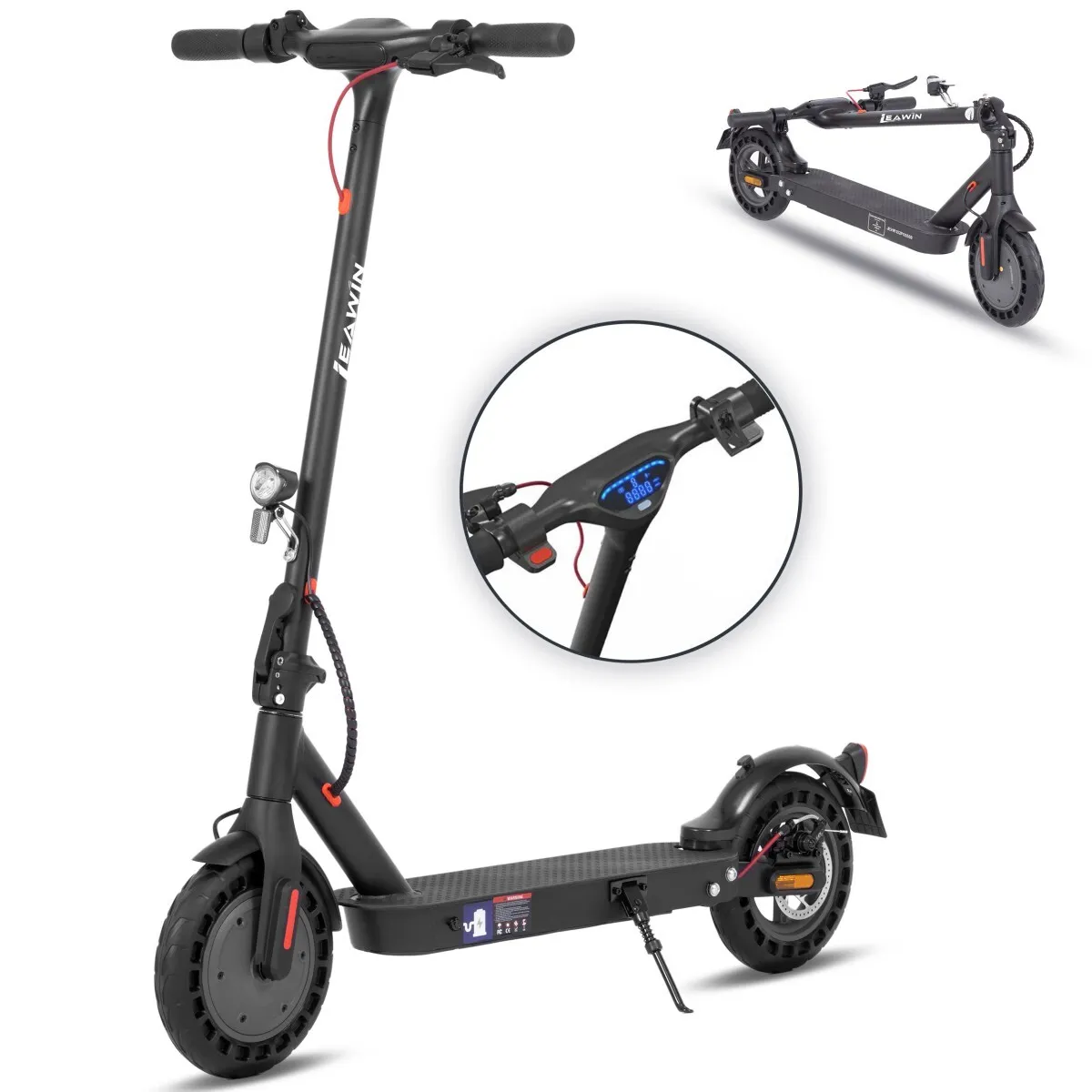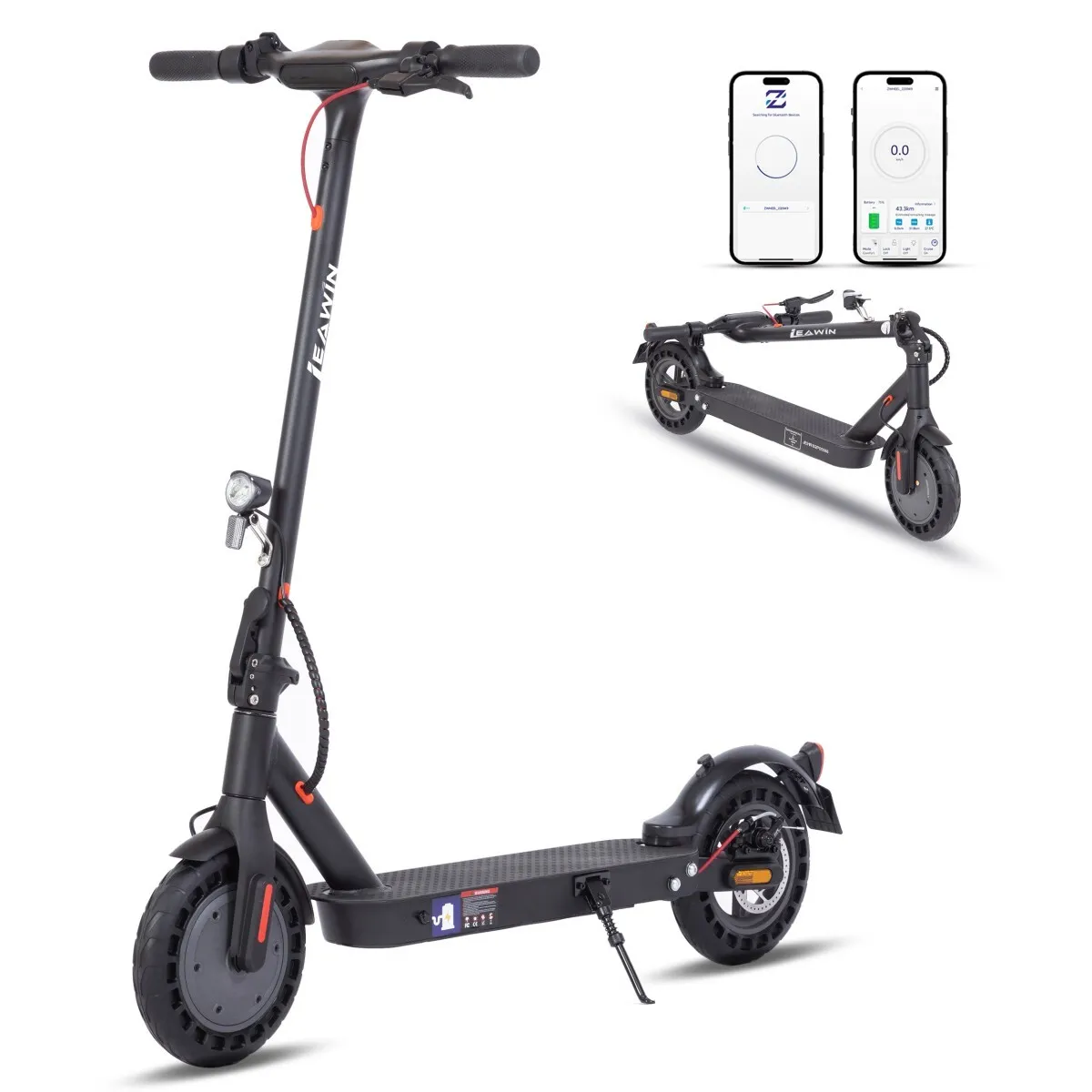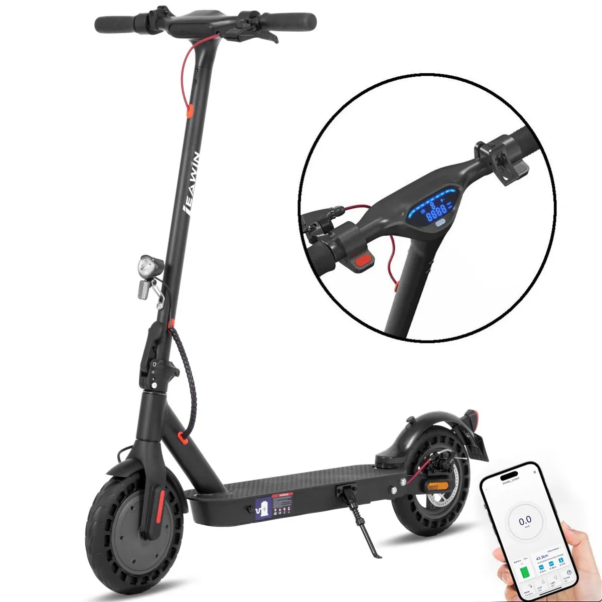 Trottinette électrique Leawin E9T, 25 cm, vitesse max. 20 km/h, contrôle via application, noire