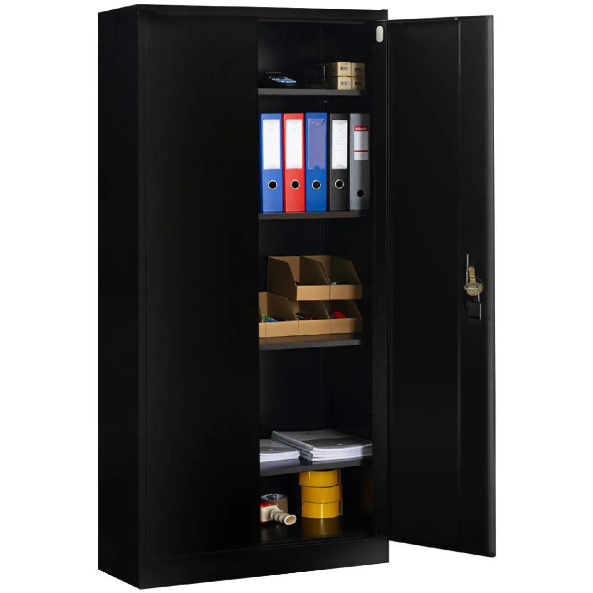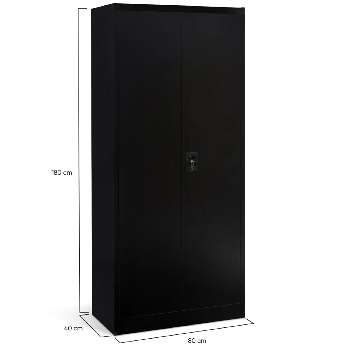 Ajoutez une touche industrielle à votre intérieur avec notre armoire métallique 80 cm 5 niveaux, alliant praticité et modernité. Cette armoire métallique noire est l'élément indispensable à avoir pour conserver un bureau bien rangé. Dotée de 5 niveaux et 4 étagères réglables en hauteur, organisez vos documents et fournitures de bureau comme bon vous semble ; fini les classeurs et feuilles de papier qui traînent ! Cette armoire s'adaptera à n'importe quel décor de bureau grâce à son coloris passe partout, son design minimaliste et son esprit "factory".Vous pouvez ranger vos dossiers et vos documents importants de manière sûre et structurée grâce à sa fermeture à clé.Sa structure en particules de bois et ses portes en métal lui assurent stabilité et solidité. N'hésitez plus et laissez vous tenter par cette armoire métallique aussi pratique qu'esthétique ! Dimensions de l'armoire métallique noire 80 cmDimensions globales : Longueur 80 cm x Largeur 40 cm x Hauteur 180 cm5 niveaux / 4 étagères amovibles Fermeture à l'aide d'une clé incluseMatériaux : panneaux de particules de bois et métalColoris : noirÀ monter soi-mêmeRetrouvez l'ensemble de notre collection métal sur notre boutique en ligne !