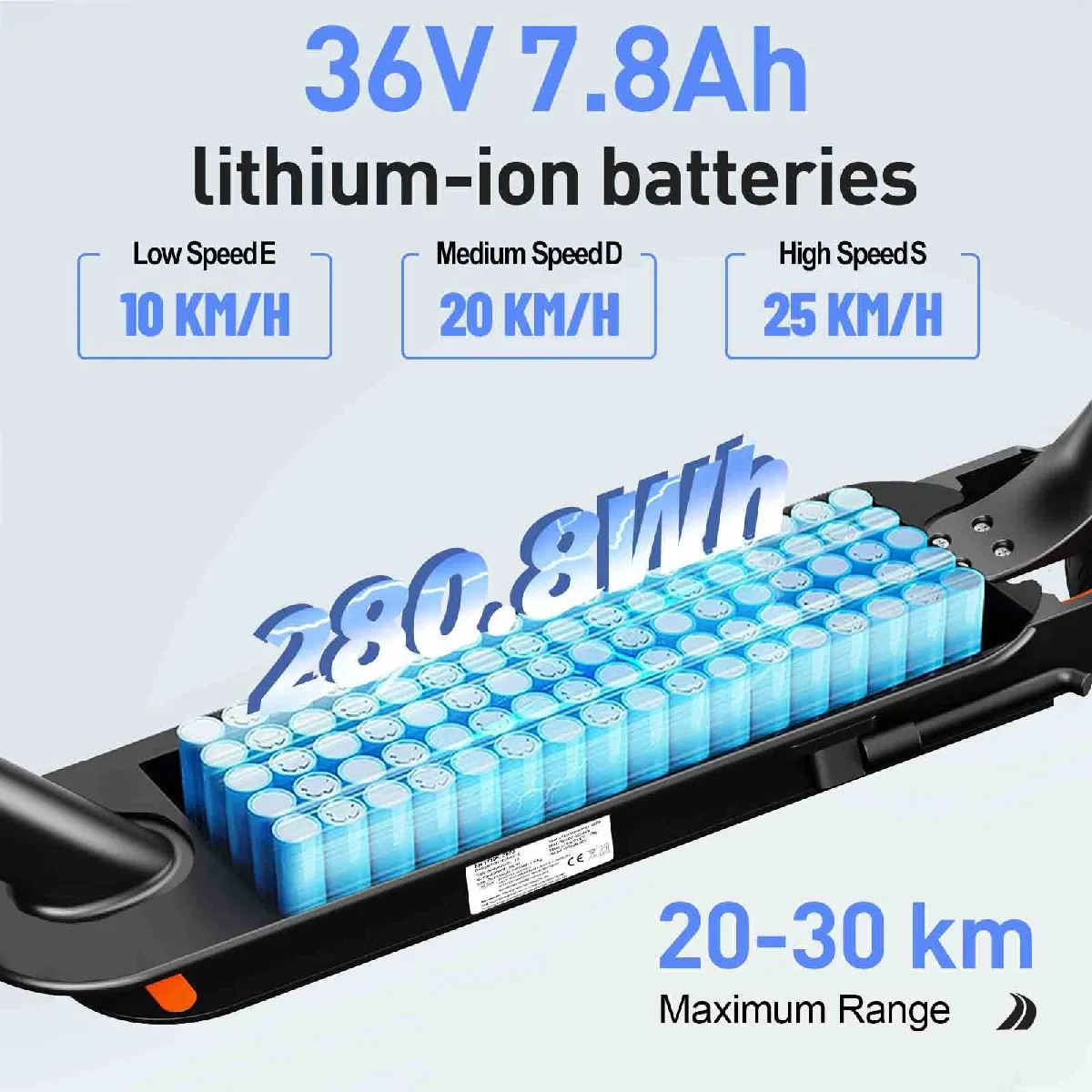 Équipé d'un moteur sans balais de 350 W, le scooter offre une accélération fluide et une conduite stable, avec une vitesse maximale de 25 km/h. Le moteur permet de gravir des pentes jusqu'à 15°, ce qui est idéal pour une utilisation quotidienne en ville.