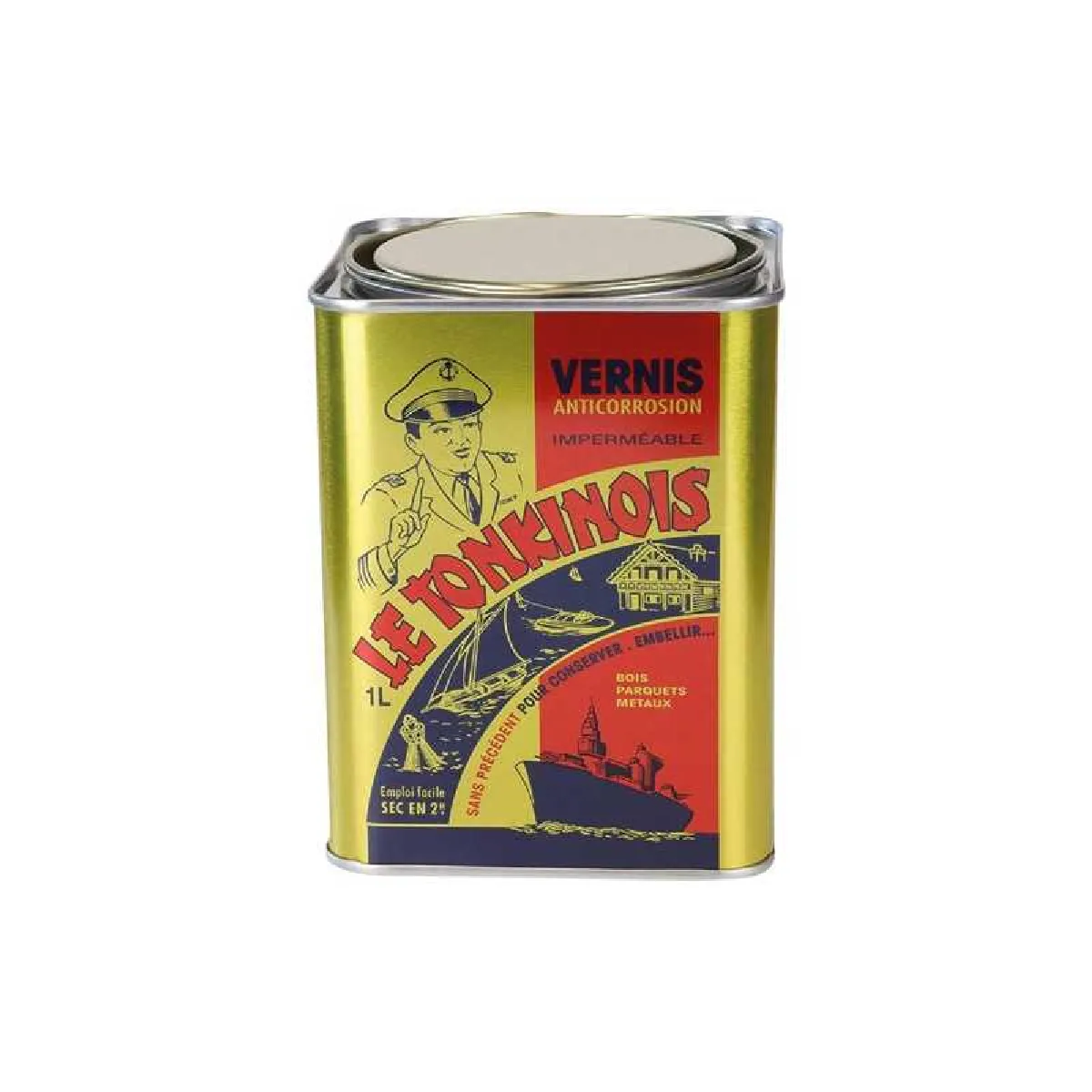 Vernis marin Le Tonkinois incolore 1 L — vernis alkyde monocomposant, imperméable anti-corrosion, haute brillance, résistant UV et intempéries, usage boiseries extérieures/intérieures, parquets, métaux et bateaux