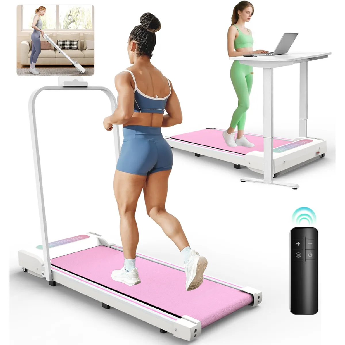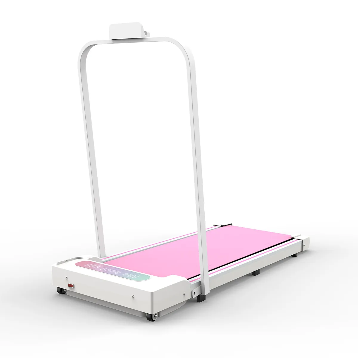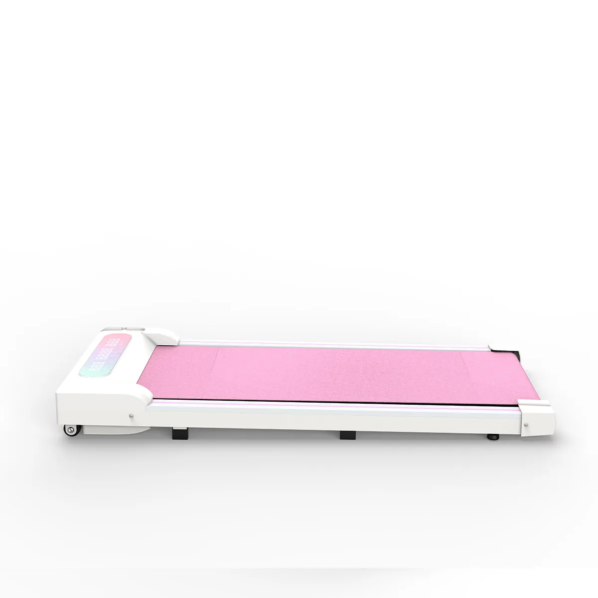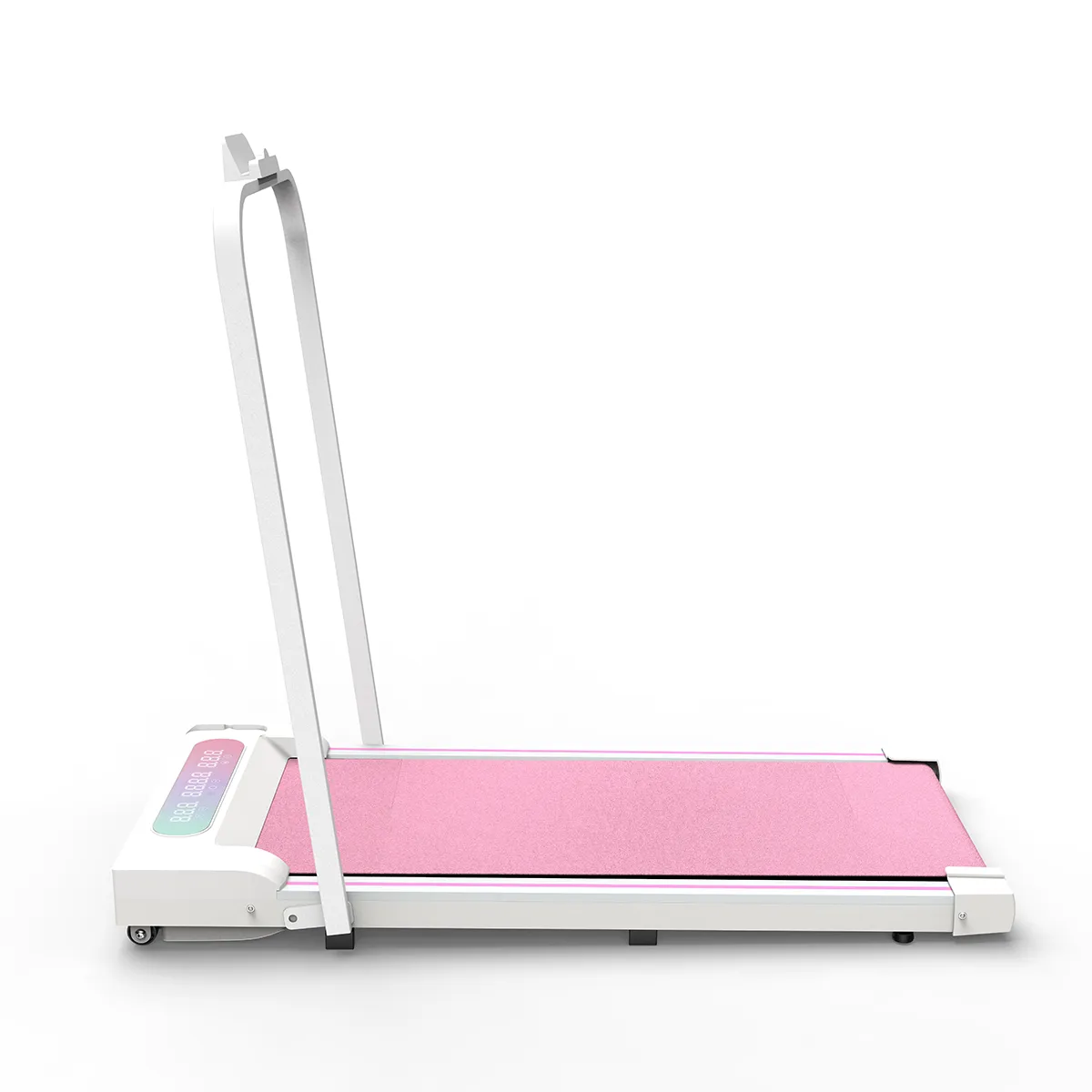 Tapis de course pliable pour la maison et le bureau, à glisser sous le bureau, écran LED et télécommande, rose