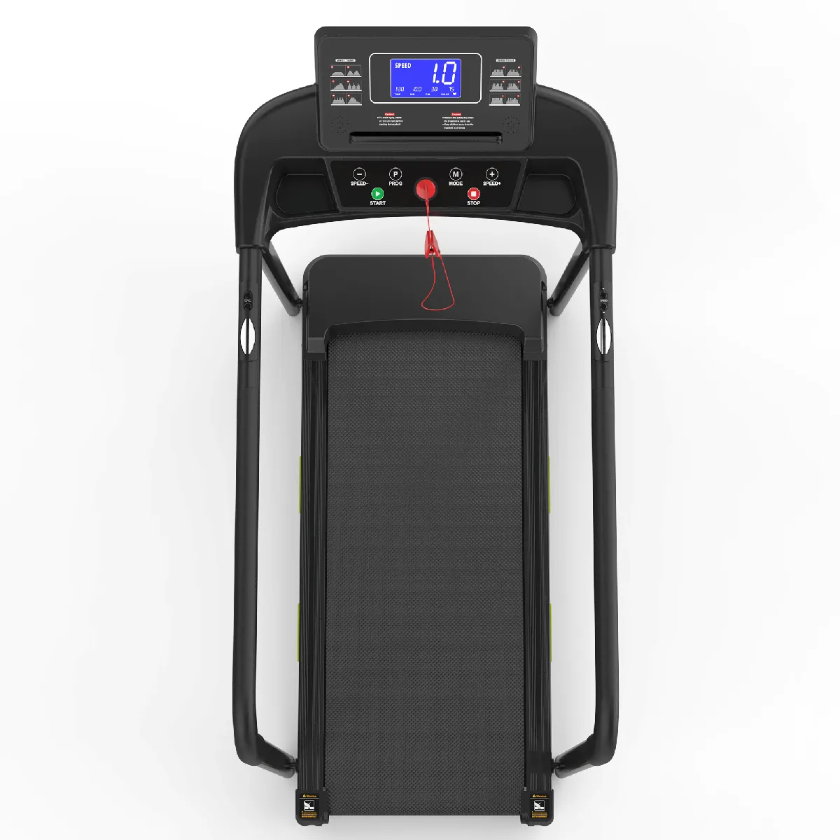 Suivez votre vitesse, la distance parcourue, le temps, les calories brûlées et vos progrès grâce à l'écran LED ou à l'application. Clé de sécurité incluse pour l'arrêt d'urgence et larges barres d'appui pour un meilleur équilibre.