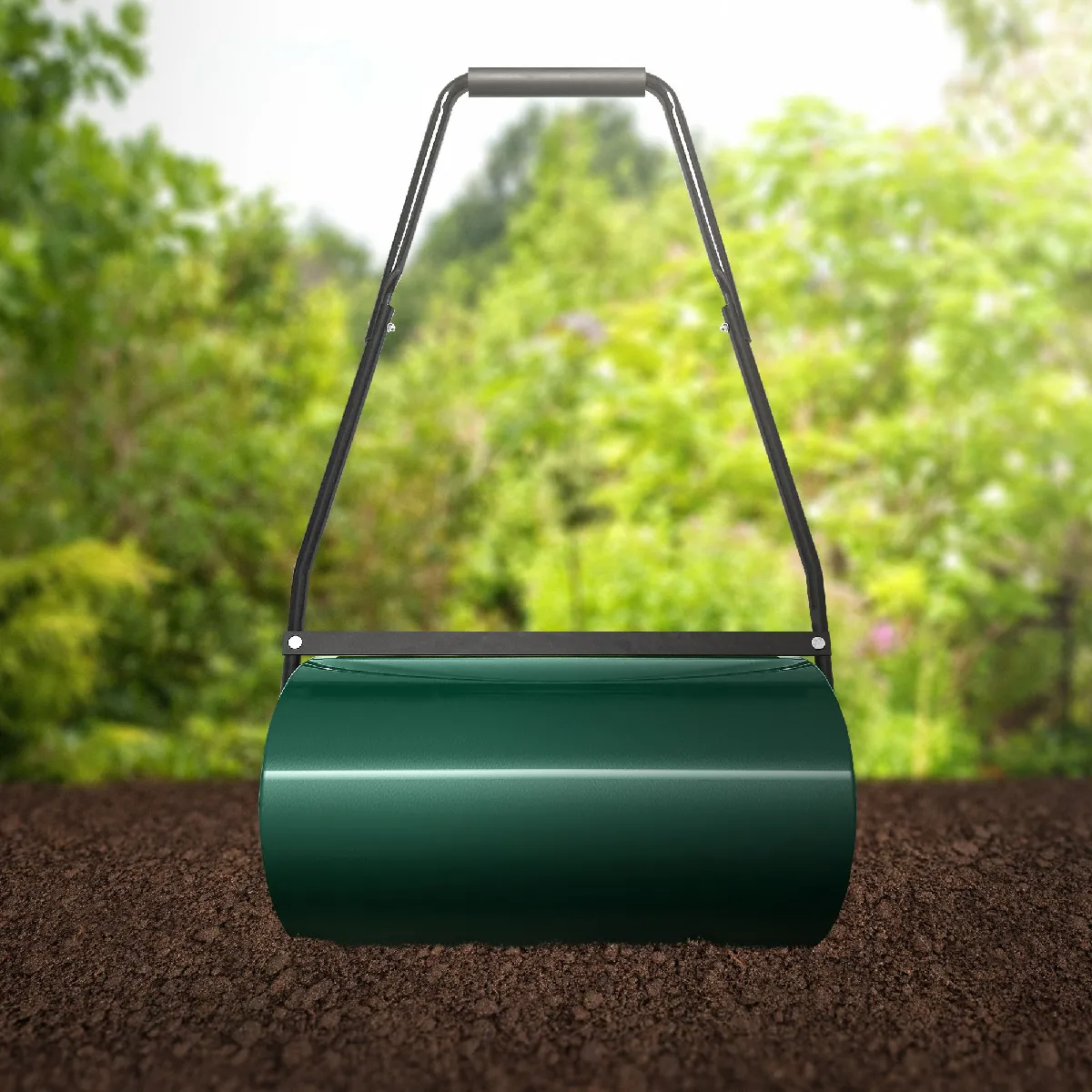 ECD Germany Rouleau à gazon remplissable d'eau/sable, rouleau de jardin 50 litres de capacité de remplissage, largeur 59,5 cm, rouleau de sol avec déflecteur de saleté, Ø31,5 cm rouleau à main vert en acier, rouleau à gazon pour compacter le sol