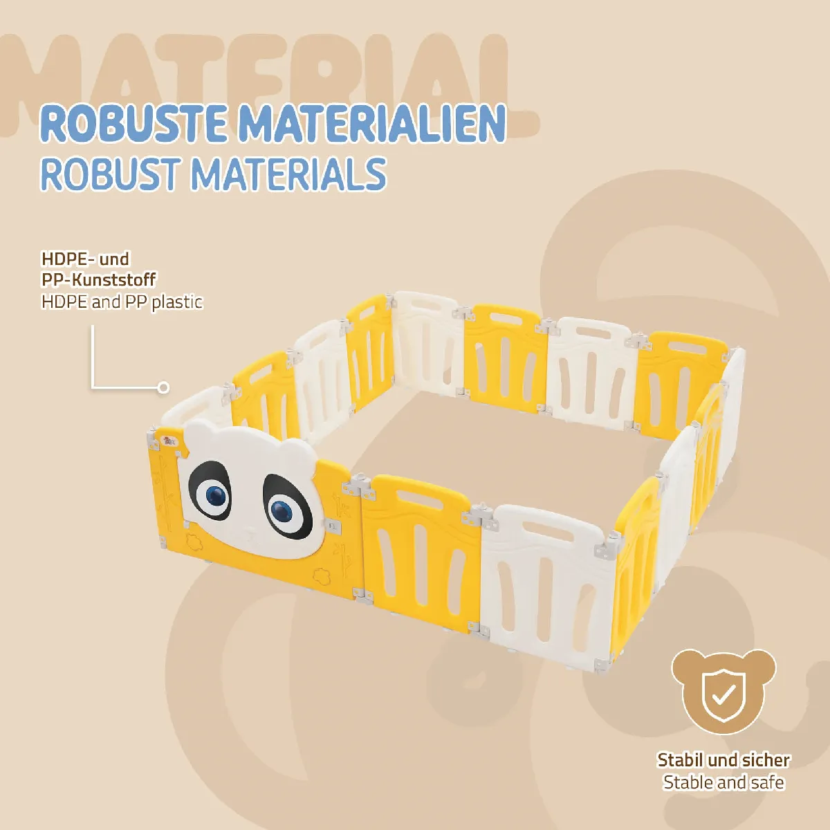 Joyz Parc bébé modulable design panda avec barrière sécurité blanc-jaune 160x160 cm |