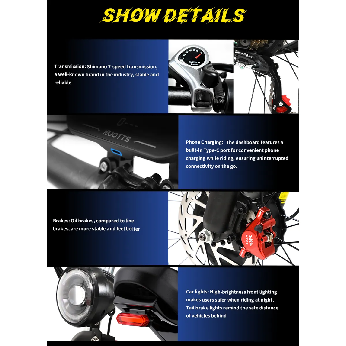 Vélo électrique DUOTTS N26 Moteur 750Wx2 Vitesse Maximale 25-45Km/h, vélo électrique Urbain 48V 20AH Autonomie Maximale 60-120Km Charge Max 150Kg