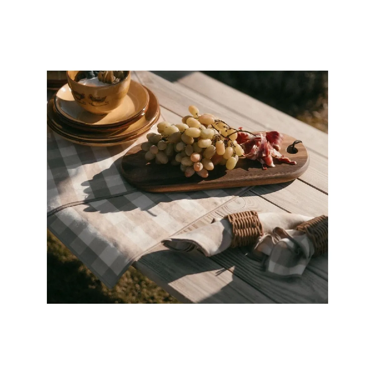 Nappe en lin beige à carreaux vichy