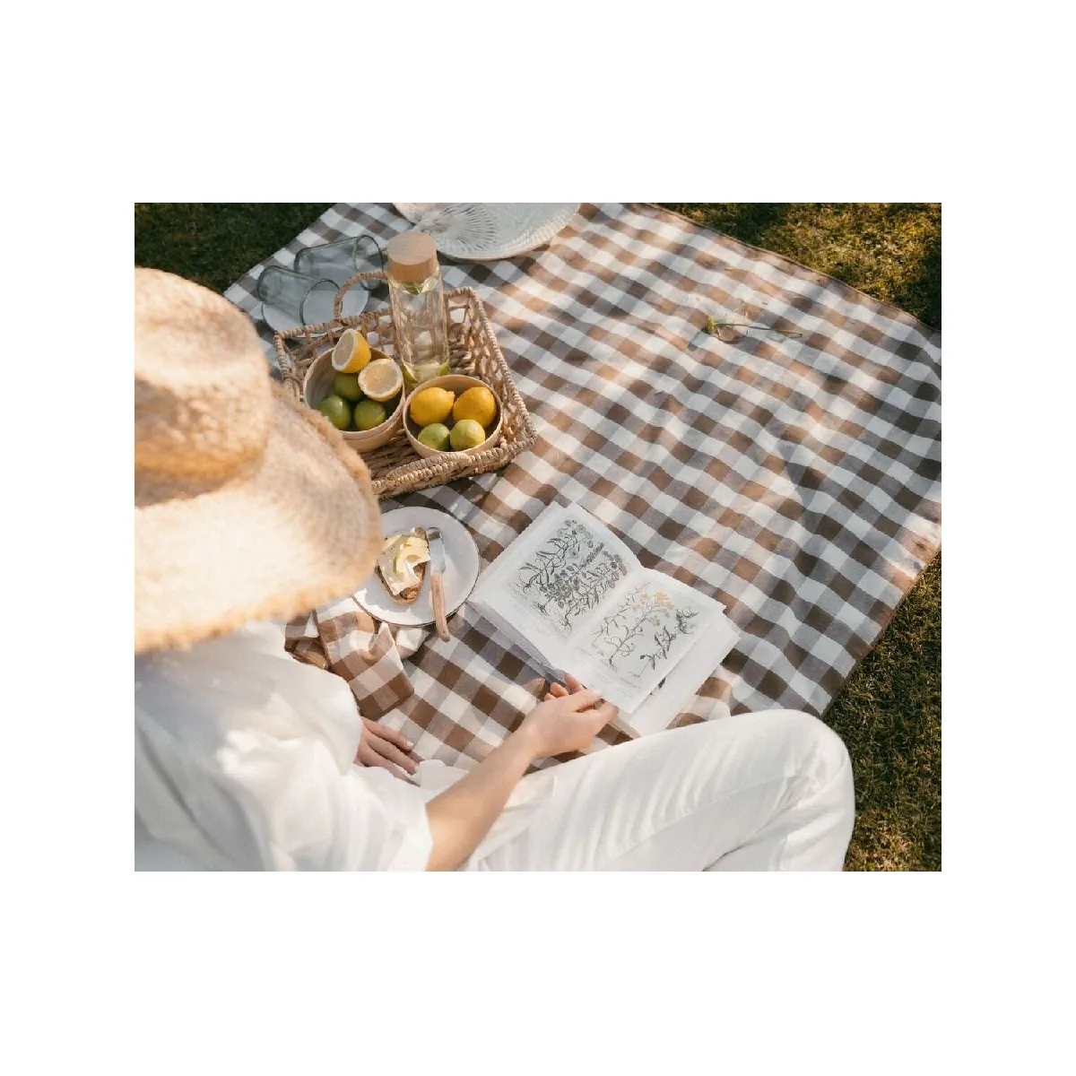 Nappe en lin à carreaux vichy marron, 140 x 240 cm