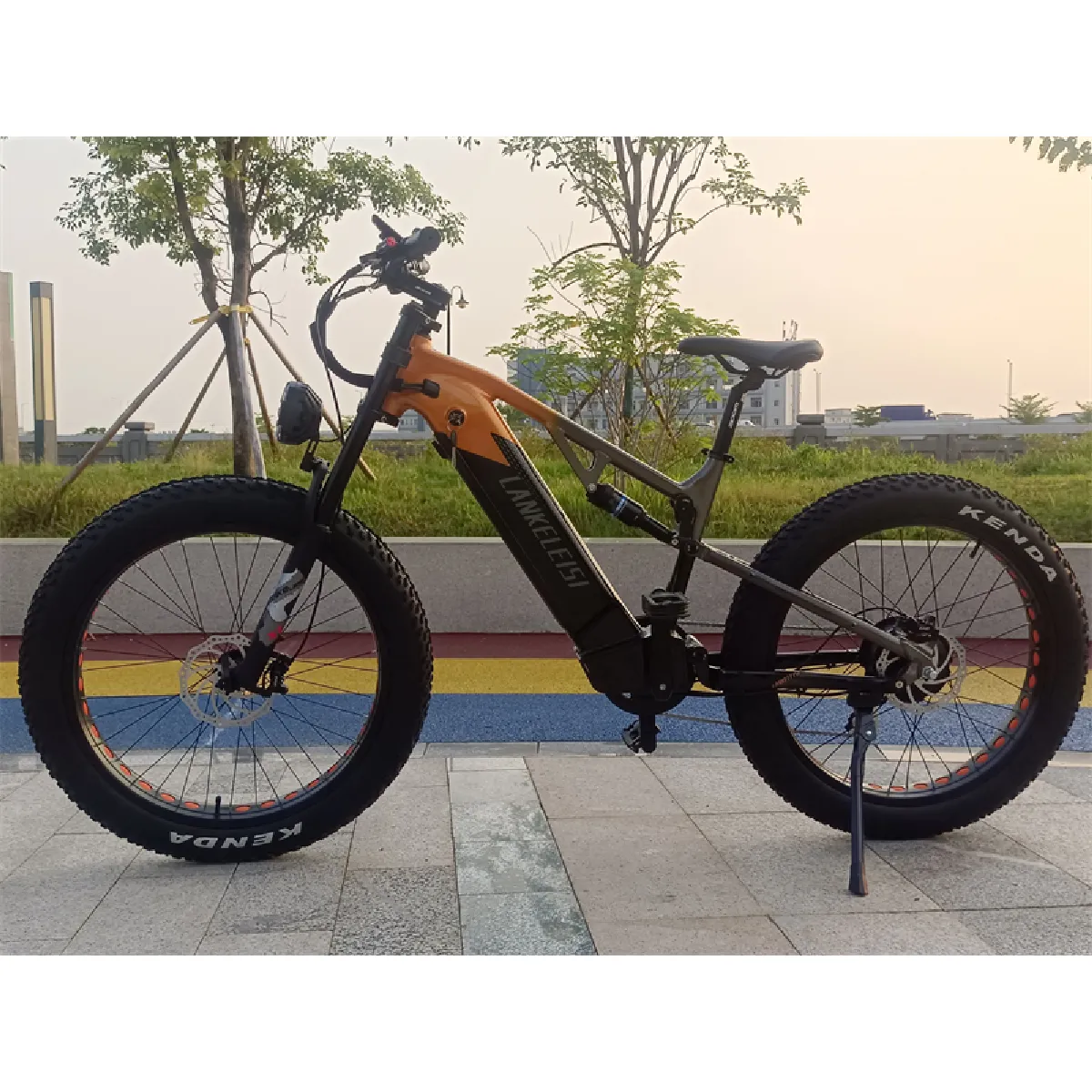 Ce vélo bénéficie dune suspension avant à ressort huile double épaule verrouillable et dun amortisseur arrière à ressort huile de 650 lbs avec structure de quatre barres. Les pneus Kenda 26*4.0'' (largeur 10 cm) offrent une excellente adhérence anti-dérapante et anti-vibration, absorbant efficacement les bosses et les chemins boueux. La suspension intégrale et les roues larges garantissent un confort optimal sur tous les terrains.