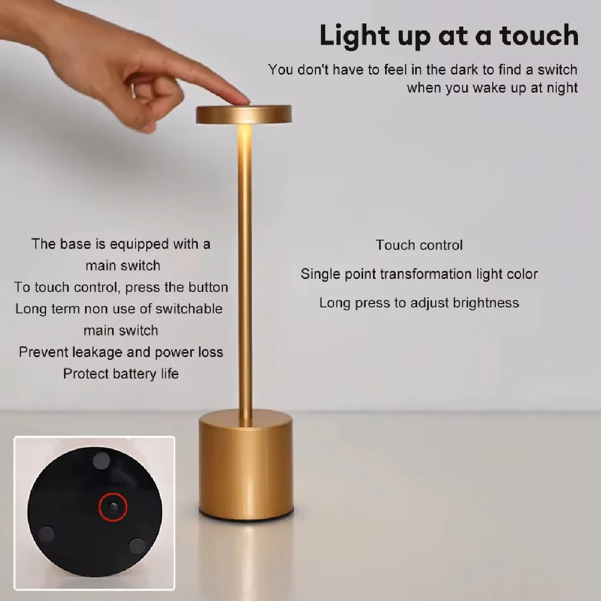 Lampe Led à poser en Métal, Intensité Variable Tactile, Rechargeable |