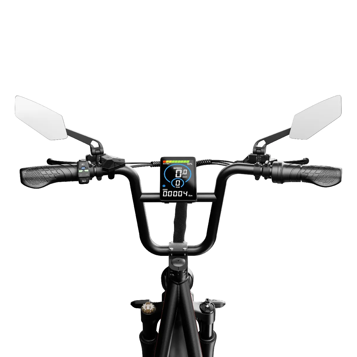 Le grand écran LCD couleur affiche clairement la vitesse, lautonomie et le mode de conduite, tandis que les 3 niveaux dassistance pédale et la cruise control offrent une expérience personnalisée selon les besoins. Il propose également des fonctionnalités connectées : déverrouillage NFC et application Bluetooth pour un accès rapide et une gestion simplifiée du véhicule. Les ressorts avant amortisseurs améliorent le confort sur les routes irrégulières, réduisant les vibrations pour les trajets longs.