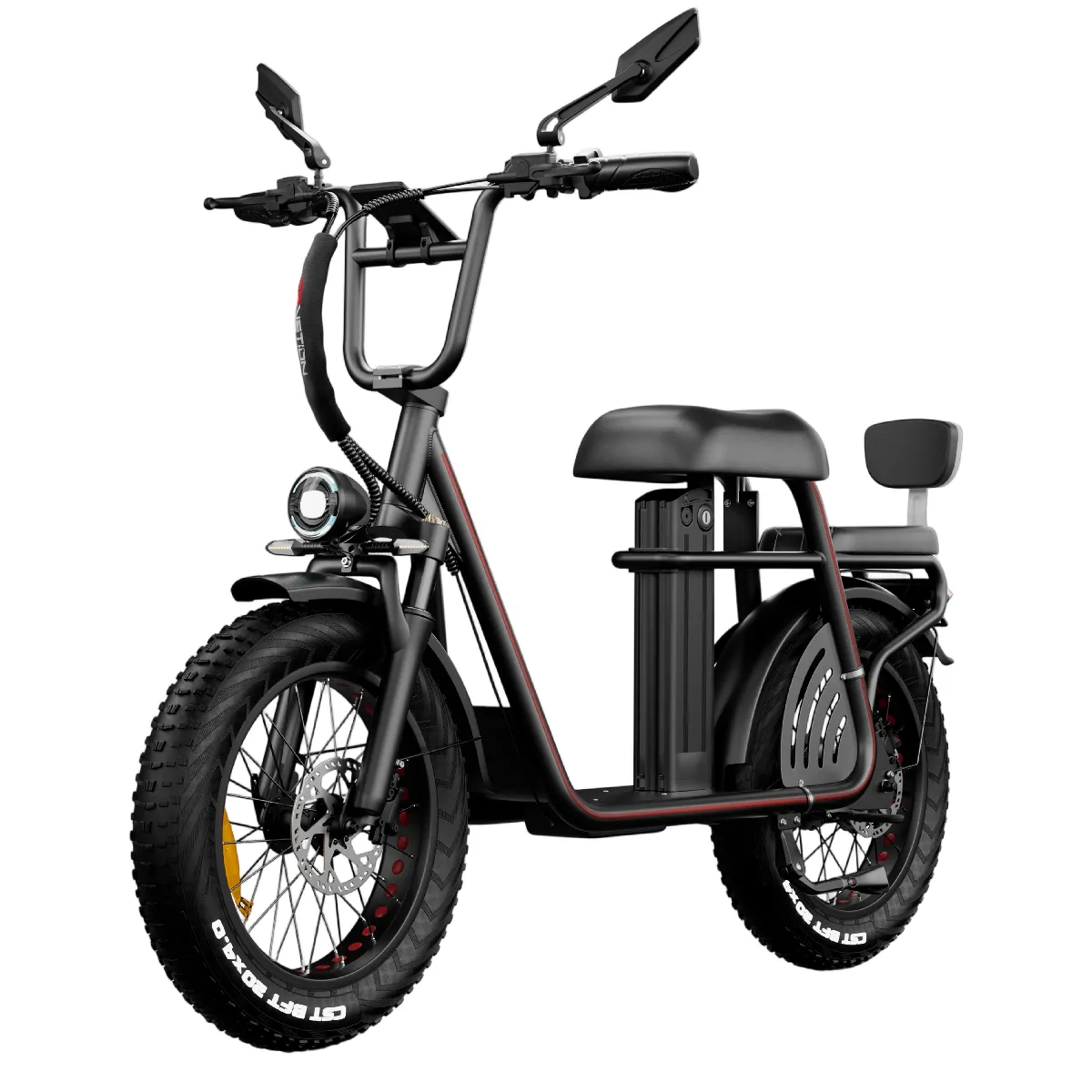 Son moteur de 750W (puissance de pointe 1000W) délivre une couple élevé qui permet de surmonter facilement des pentes de 30° parfait pour les zones urbaines accidentées ou les chemins de campagne. La vitesse maximale (débloquée) atteint 55 km/h (vitesse dusine 25 km/h, conforme aux réglementations), offrant une flexibilité entre la légalité pour les trajets urbains et la performance pour les sorties hors ville. Ce moteur assure une accélération fluide même avec une charge maximale de 200 kg.