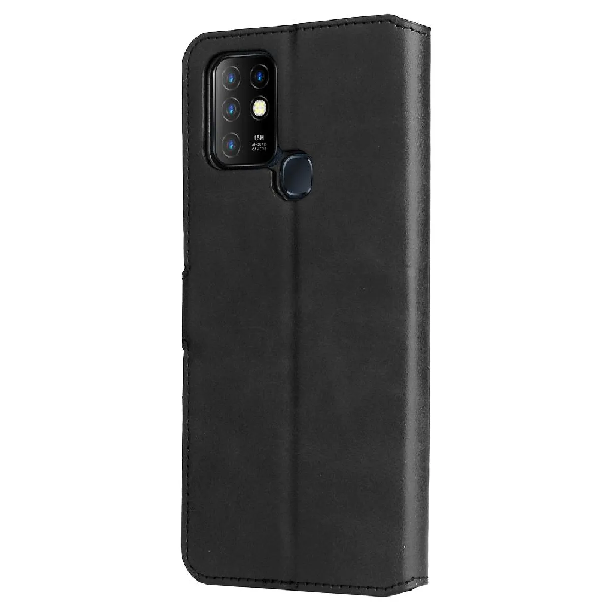 Flip Étui Pour Infinix Hot 10 Fermeture magnétique Couverture rabotant Fentes pour cartes Découpes précises Noir