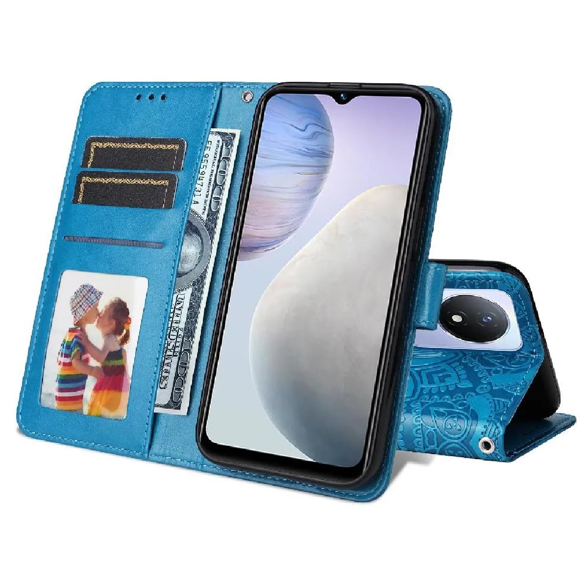Étui Pour VIVO Y02 4G Housse de protection Cuir Fentes pour cartes Flip Bleu