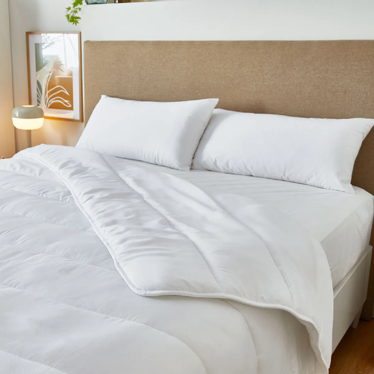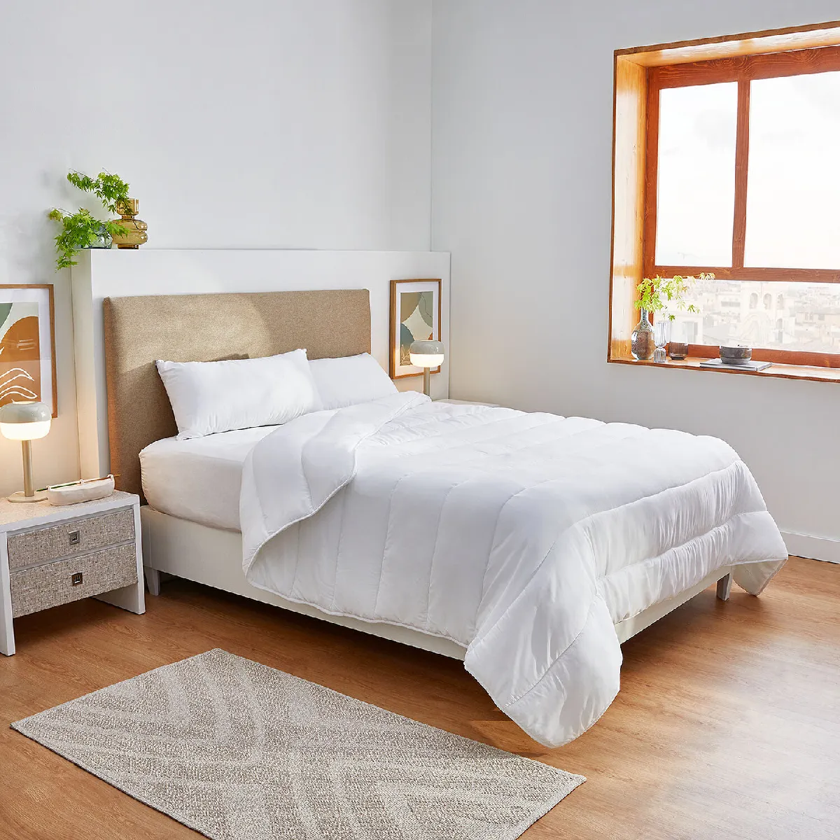 Repos Sain et Confortable pour l'Automne et l'Hiver. Profitez d'un sommeil réparateur pendant les mois les plus froids avec notre couette nordique anti-allergique de 300 gr. Confectionnée en microfibre au toucher extra doux et avec un garnissage en fibre creuse siliconée de haute qualité, cette couette est la solution parfaite pour ceux qui recherchent confort et protection. Son tissu et son garnissage ont reçu un traitement complet anti-acariens, antibactérien et anti-moisissure, créant une barrière efficace contre les allergènes. Cela en fait le choix idéal pour les personnes souffrant d'allergies, d'asthme ou ayant la peau sensible, garantissant un environnement de repos propre et sain pour toute la famille. Le garnissage de 300 gr/m² offre une chaleur optimale sans être lourd, tandis que son excellente capacité de respiration prévient l'accumulation d'humidité et la transpiration nocturne. De plus, son entretien est très simple, car elle peut être lavée en machine à 30°C, conservant son volume et ses propriétés hygiéniques. Protection Hygiénique Totale : Son triple traitement anti-allergique minimise la présence d'acariens, de bactéries et de moisissures, assurant un environnement de sommeil plus sûr. Confort Thermorégulateur : La fibre creuse siliconée permet une circulation correcte de l'air, maintenant une température corporelle agréable toute la nuit. Idéale pour les Peaux Sensibles : Ses matériaux hypoallergéniques préviennent les irritations et les réactions allergiques, offrant un repos agréable et sûr.