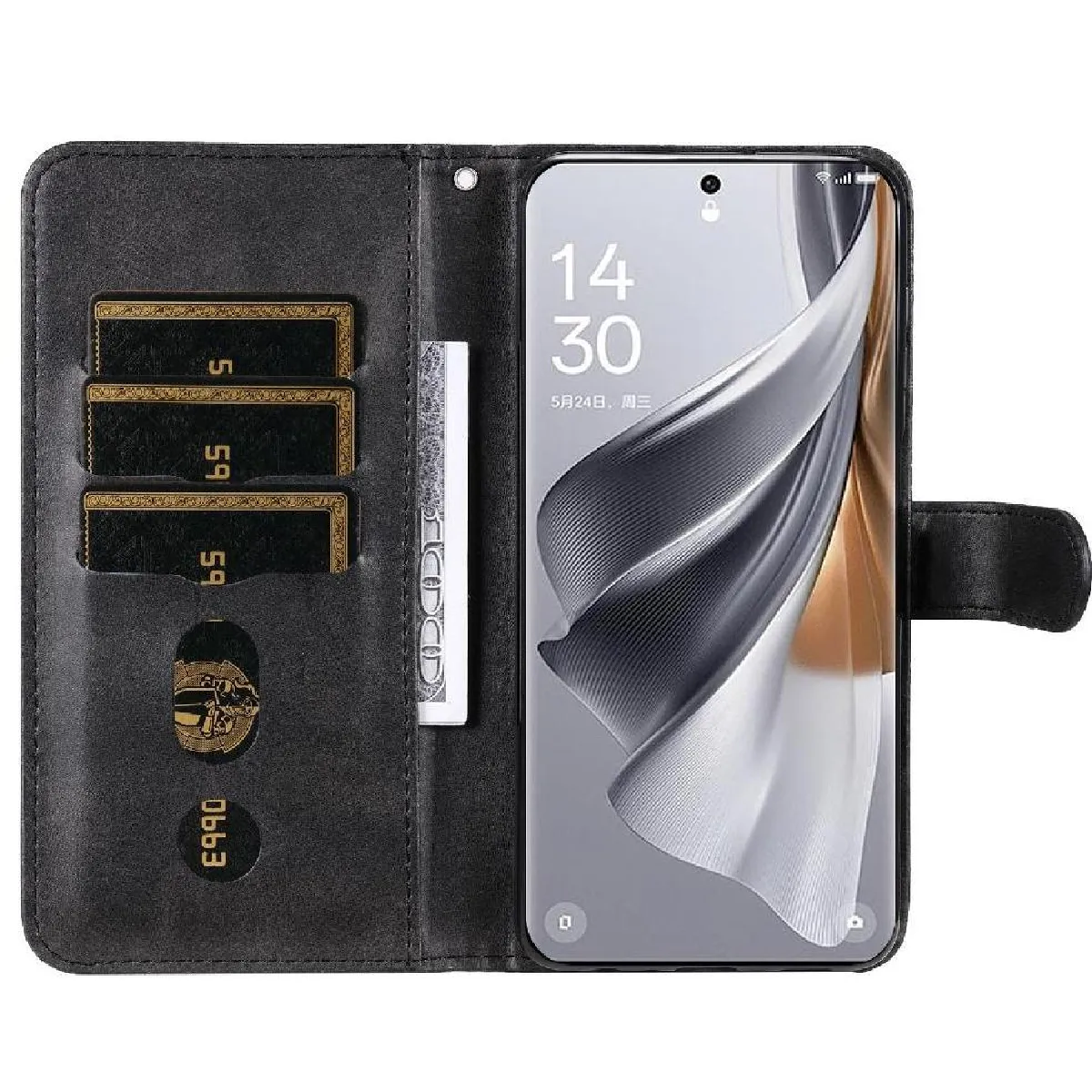 Étui Pour OPPO Reno 10 Pro Cuir Housse de protection Fermeture éclair Supports de fente pour carte Noir |