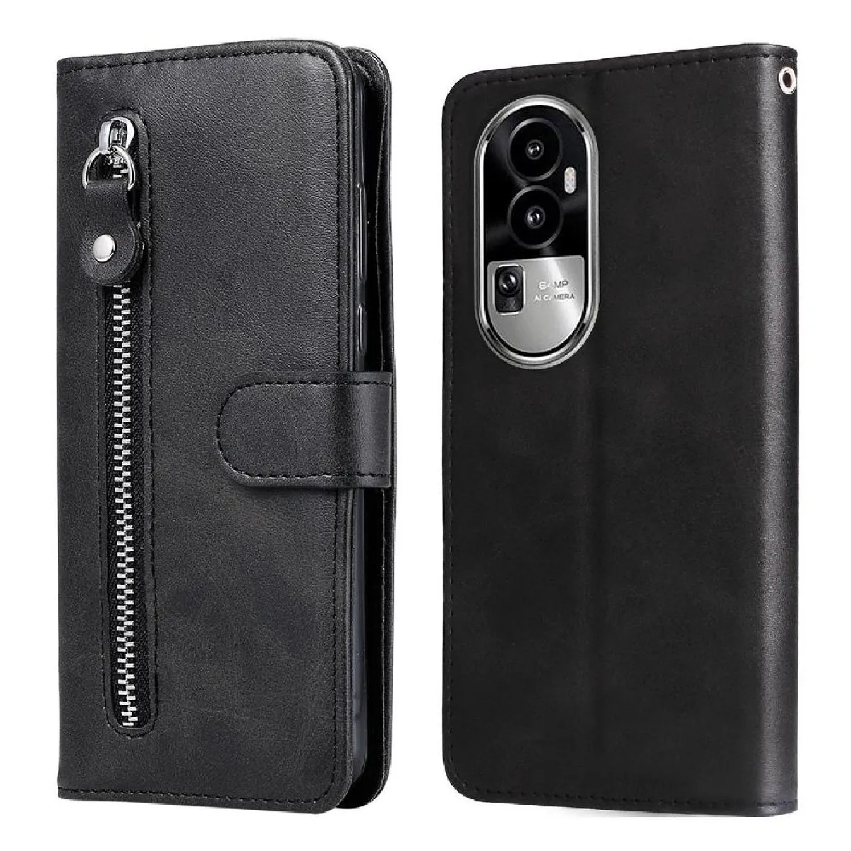 Étui Pour OPPO Reno 10 Pro Cuir Housse de protection Fermeture éclair Supports de fente pour carte Noir
