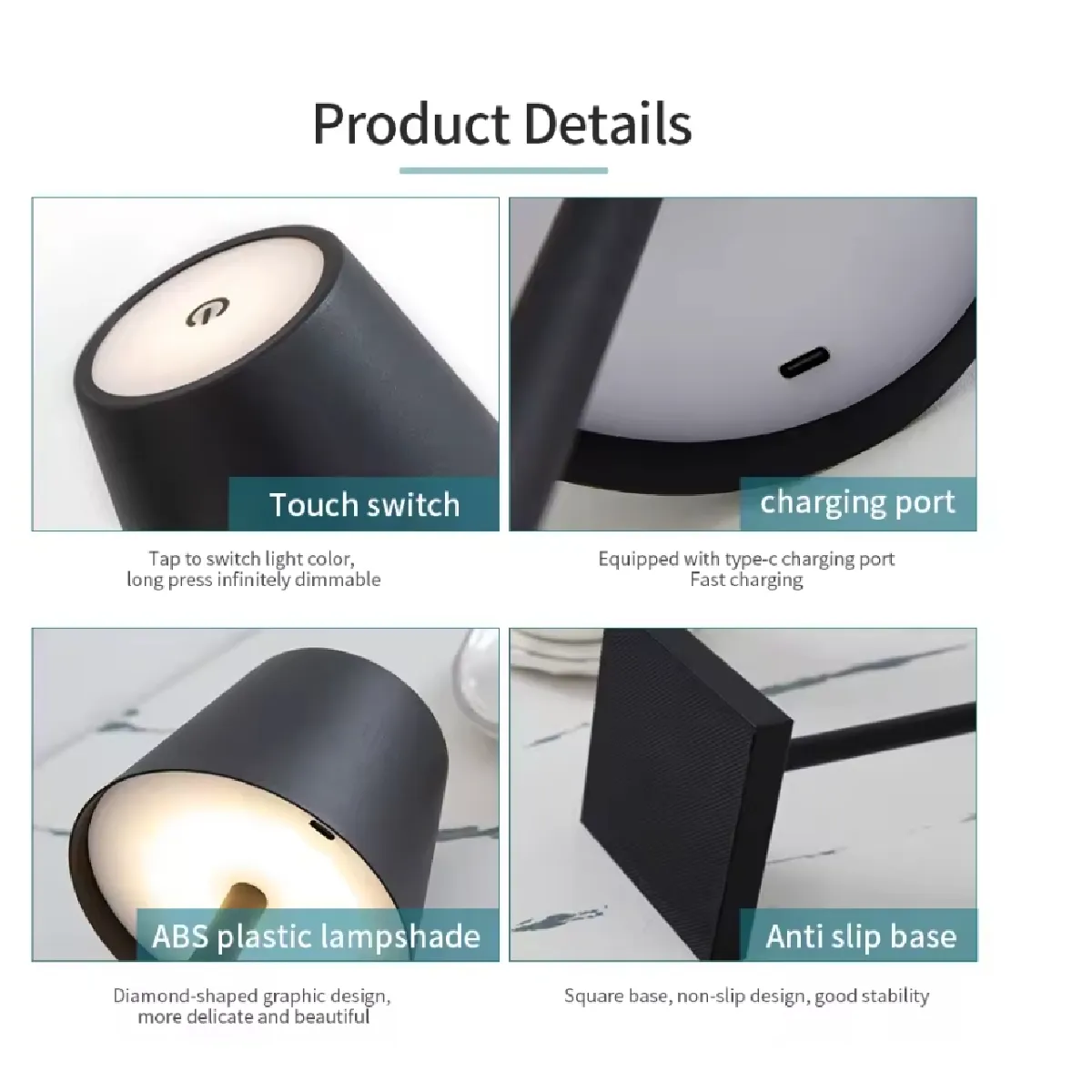 Design : Corps en alliage d'aluminium, base antidérapante, bras mince et ombre mate, taille optimale pour différents espaces.