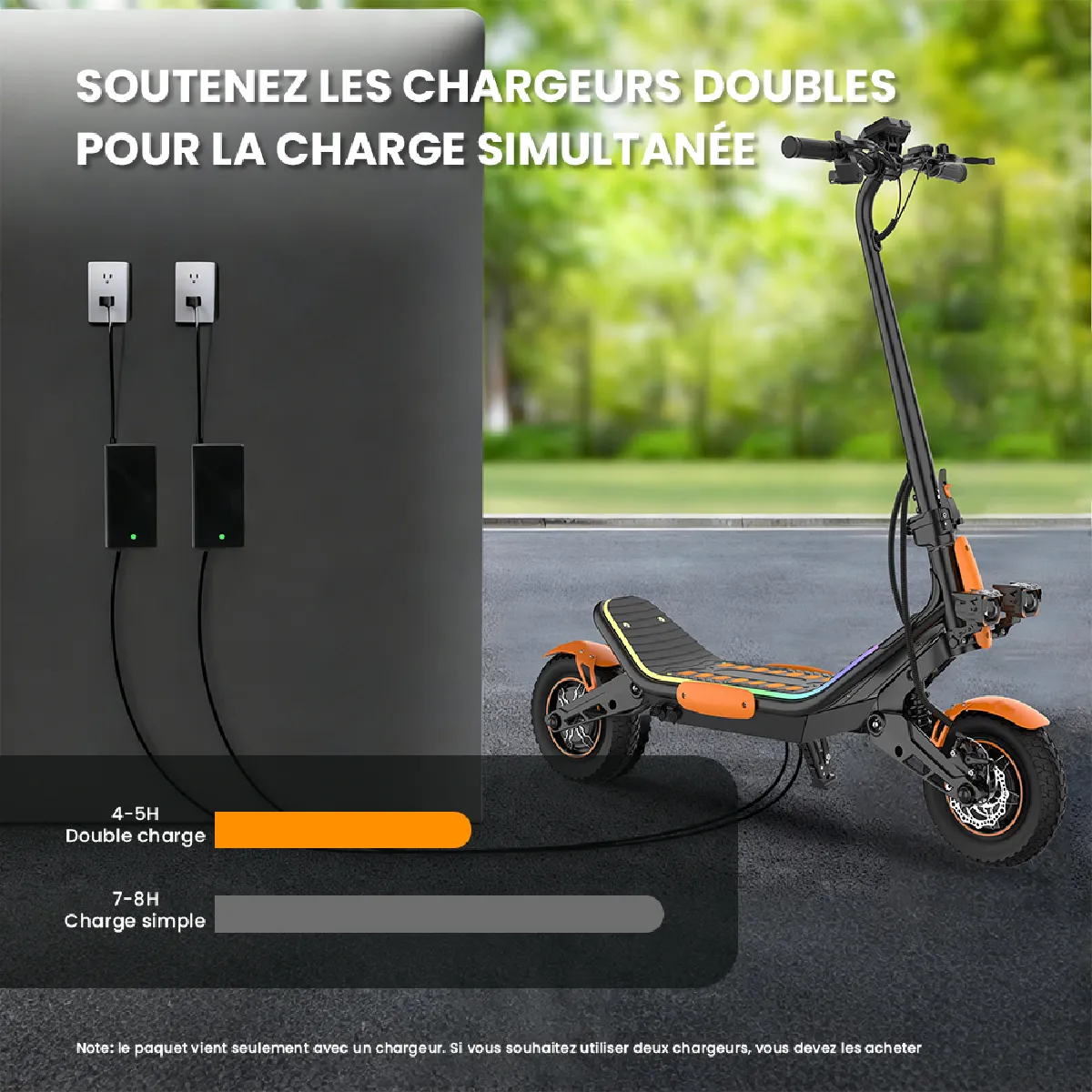 Dominez tous les défis grâce à la puissance inégalée des deux moteurs 1500W. Bénéficiez d'une accélération intense, d'une vitesse de pointe de 70 km/h et d'une capacité de franchissement exceptionnelle. Le système intelligent intègre une protection thermique pour une durabilité optimale. Personnalisez votre conduite avec plusieurs modes de vitesse réglables (simple et double moteur).