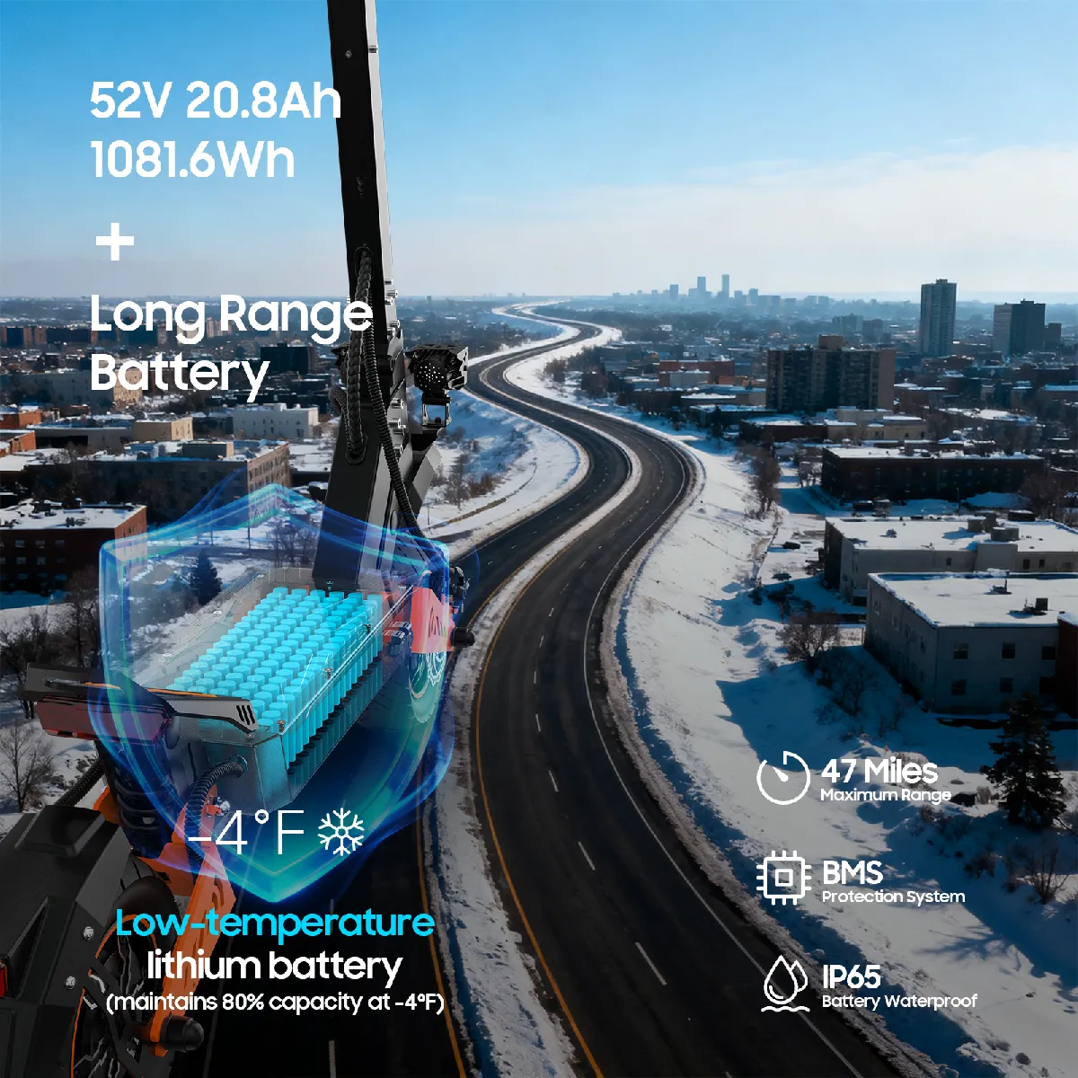 Capacité : 52V 20.8Ah Lithium-ion