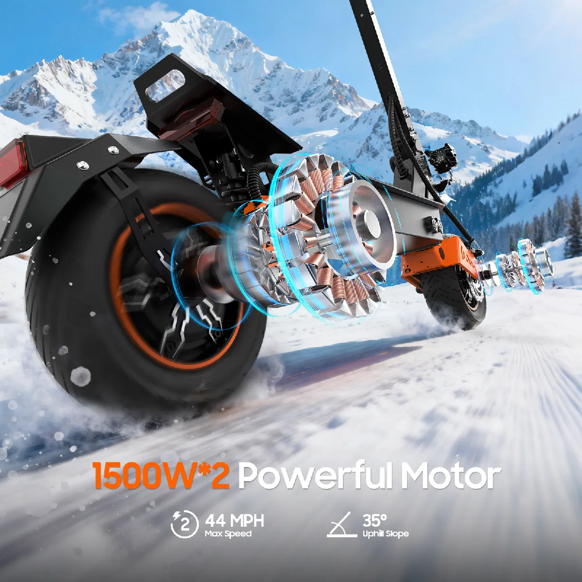 Dominez tous les terrains avec le système double moteur 1500W ! Expérimentez une accélération fulgurante, une vitesse de pointe de 70 km/h et franchissez des pentes à 35° sans effort. Basculez entre modes mono et bi-moteur pour optimiser puissance ou autonomie.