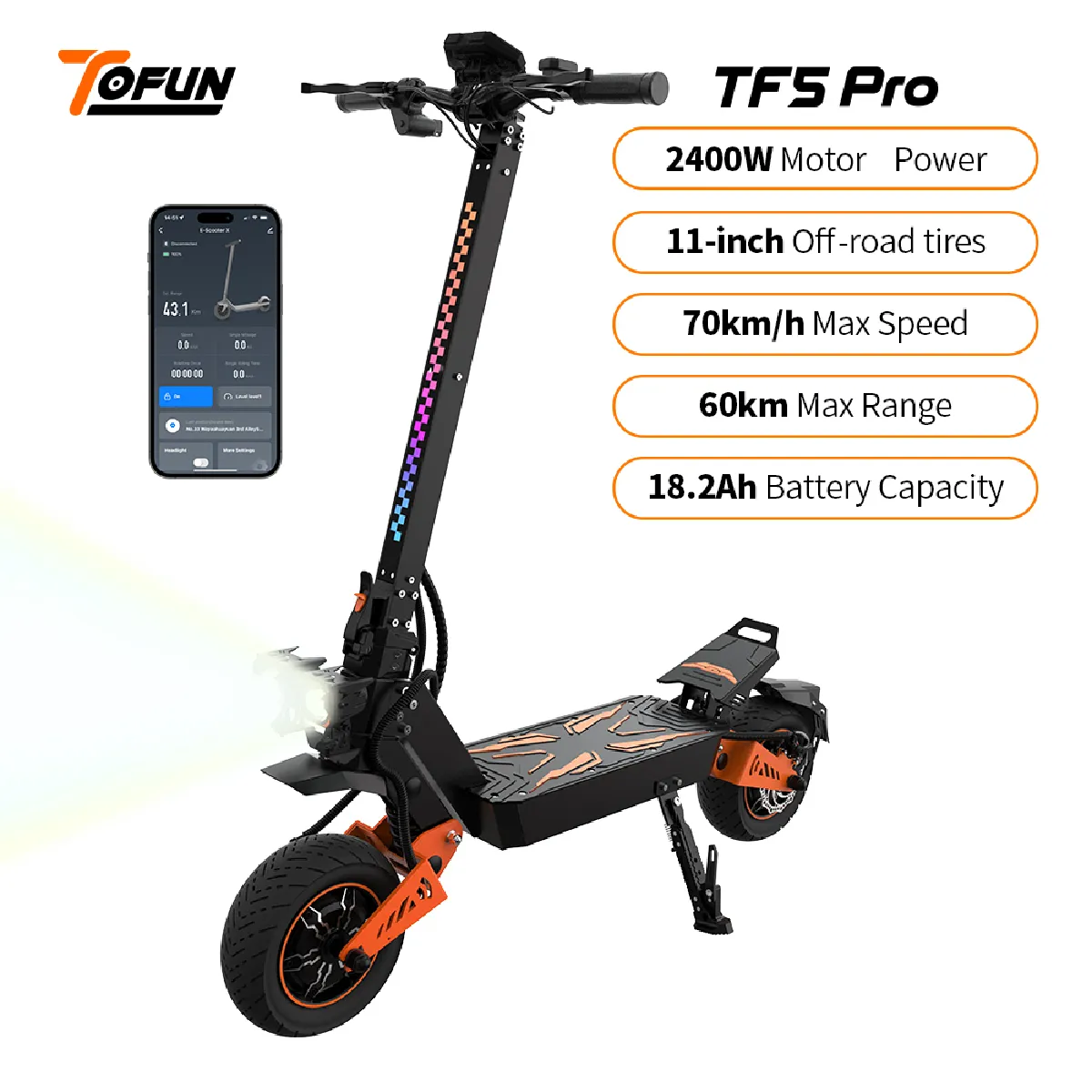 Trottinette électrique pour adultes TOFUN TF5pro 1200W*2 moteurs doubles 11" Pneus gonflables hors route E-ABS et freins à double disque à vitesse maximale de 60 km/h et autonomie maximale de 60 km |