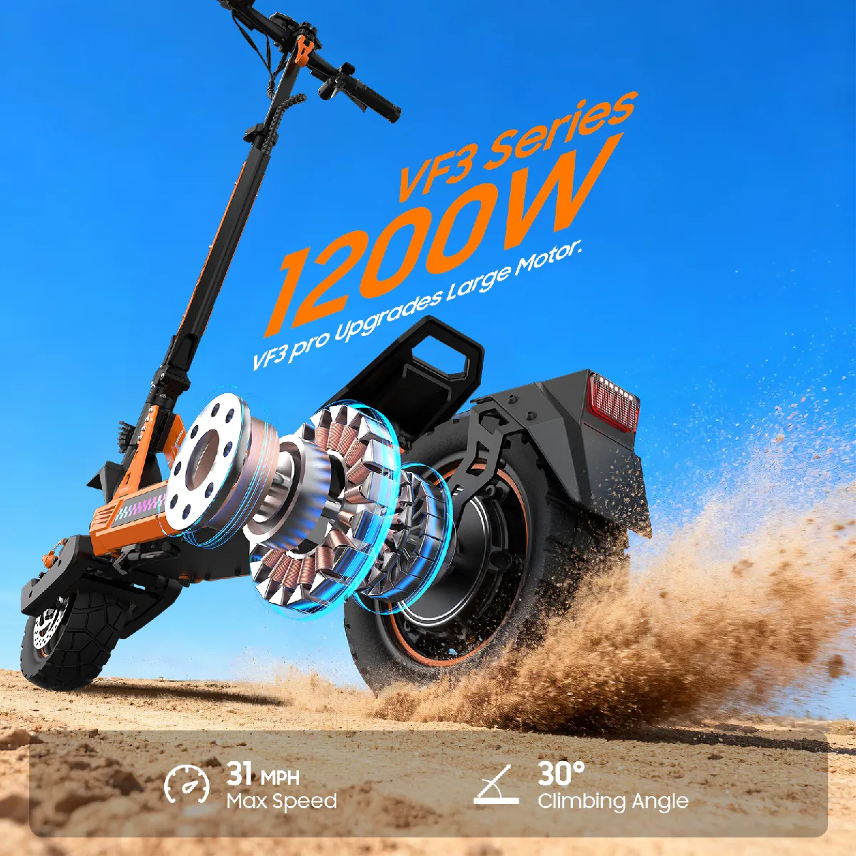 Trottinette électrique pour adultes TOFUN TF3pro 1200W moteur rapide tout-terrain scooter électrique à hauteur réglable poussant à une vitesse maximale de 50 km/h et une autonomie maximale de 50 km |