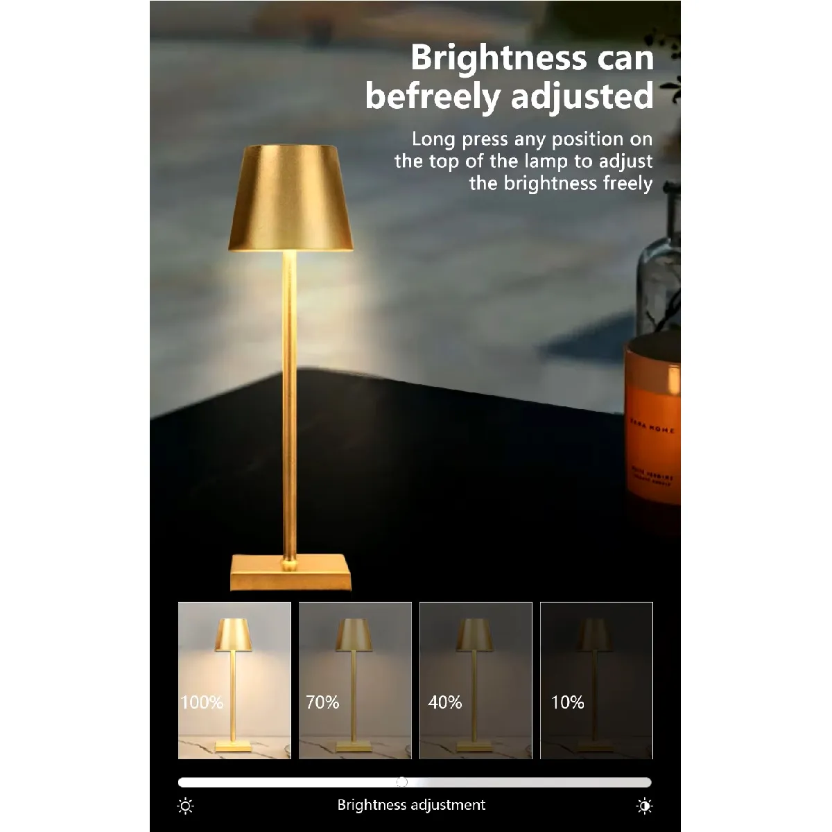 Lampe à Poser Led, Tactile, en Aluminium Brossé, Intensité Variable - Dimmable, Rechargeable |