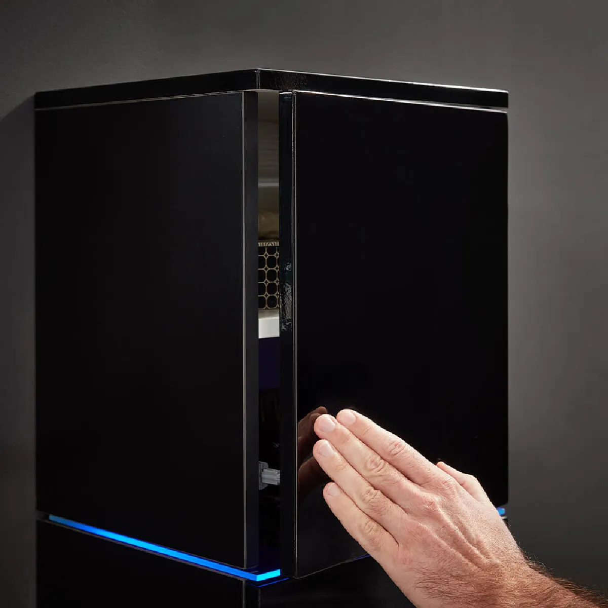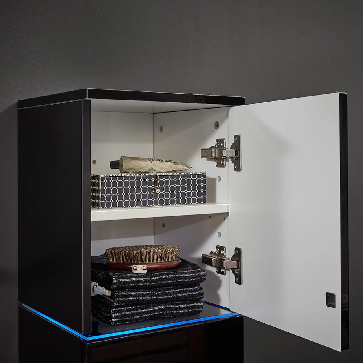 * Éclairage LED bleu dans l'armoire suspendue