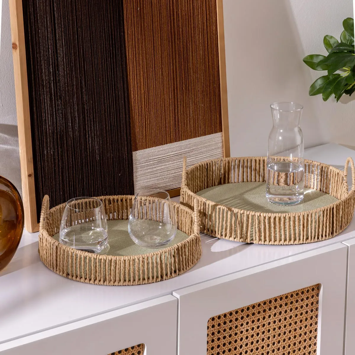 Atmosphera Lot de 2 Plateaux Ronds Ali 35cm Naturel |