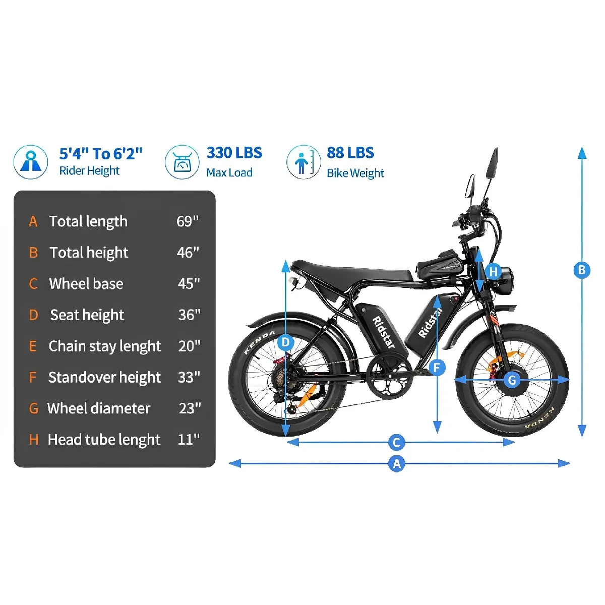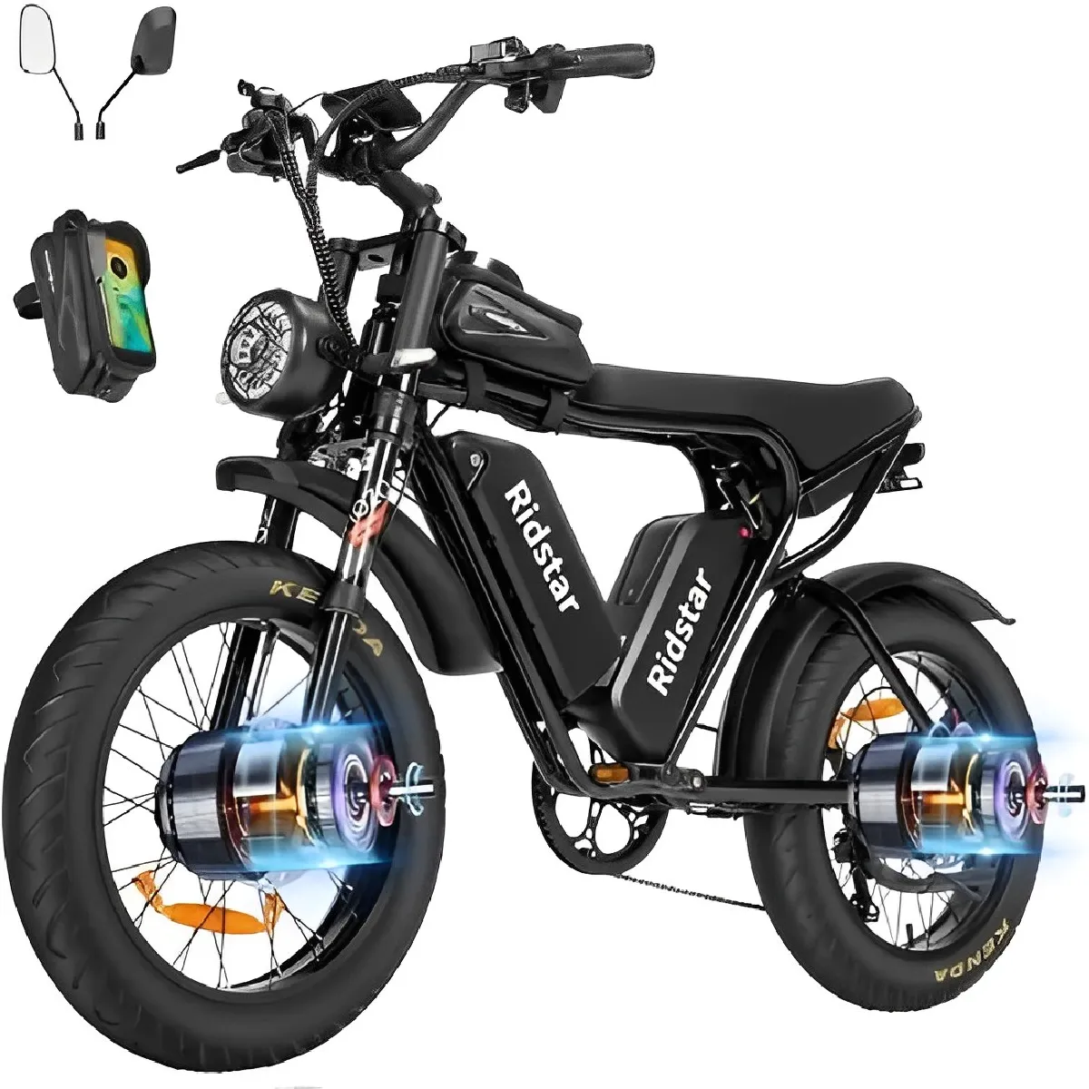 Vélo électrique - RIDSTAR Q20 PRO - Autonomie 200km - Double Moteur 2000W(2*1000W) - Batterie 52V 40Ah (2*20Ah)- Vitesse 55 km/h |