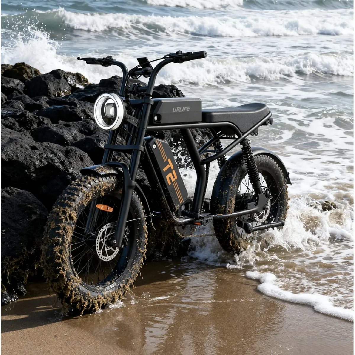 Le vélo électrique URLIFE T2 est équipé dun moteur 48V 500W (puissance de pointe 750W), offrant une vitesse maximale de 45 km/h pour des trajets dynamiques. Ses opony fat tire 20*4,0 pouces (noires ou marron) garantissent une adhérence optimale sur neige, sable, sentiers ou routes urbaines, tandis que le cadre en acier à haute teneur en carbone assure robustesse et stabilité. Idéal pour les aventures outdoor comme pour la ville, il surmonte facilement les obstacles.