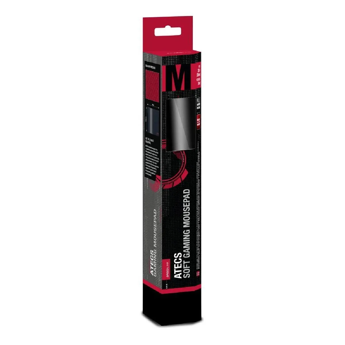 Commentaire vendeur : ATECS Série M est un tapis de souris gamer qui va vous surprendre par son incroyable glisse.Conçu à partir d'un tissus à la fois souple et résistant, ce tapis léger et de haute qualité vous offrira tout ce que l'on peut attendre d'une surface de jeu.Celui-ci dispose d'une gomme anti-dérapante qui évitera à ce que la base bouge lorsque vous êtes en pleine action. Caractéristiques techniques :Modèle : ATECS Série MMarque : SpeedLinkUtilisation : GamingLocalisation : AllemagneDimensions : 380 x 300 x 3 mmPoids du tapis : 0.380 gStructure : SoupleSurface : Tissu lisseCouleur : Noir et Rouge Contenu de la livraison :1 x Tapis de souris gamer ATECS Série M