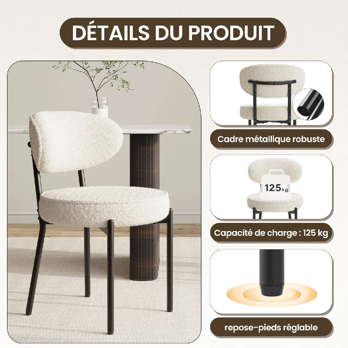 Ces chaises de salle à manger sont conçues dans un style simple et moderne, s'intégrant parfaitement dans tous les environnements contemporains. Que ce soit dans votre salle à manger, cuisine ou salon, elles ajouteront une touche de couleur et de sophistication à votre espace.