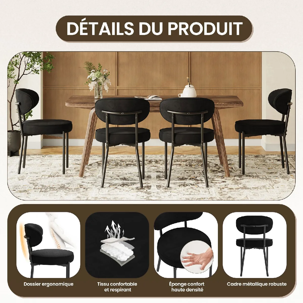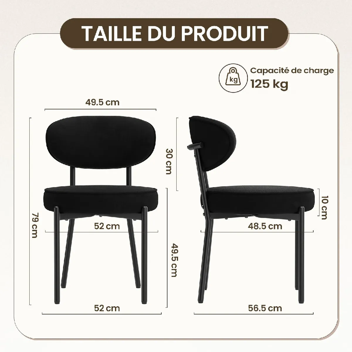 Smartue Chaises de salle à manger modernes – Lot de 2, pieds en métal robustes et assise ultra-confortable-Noir |