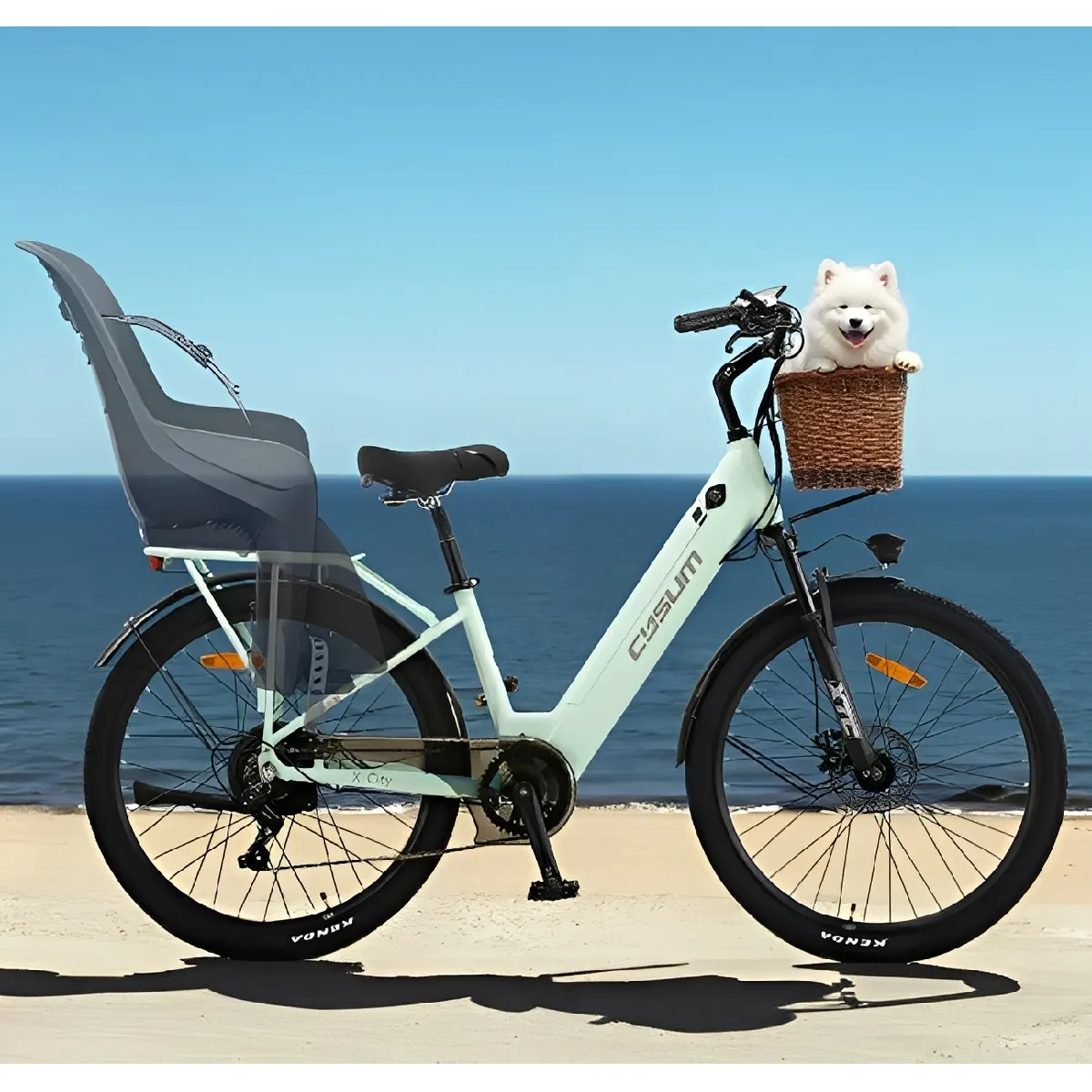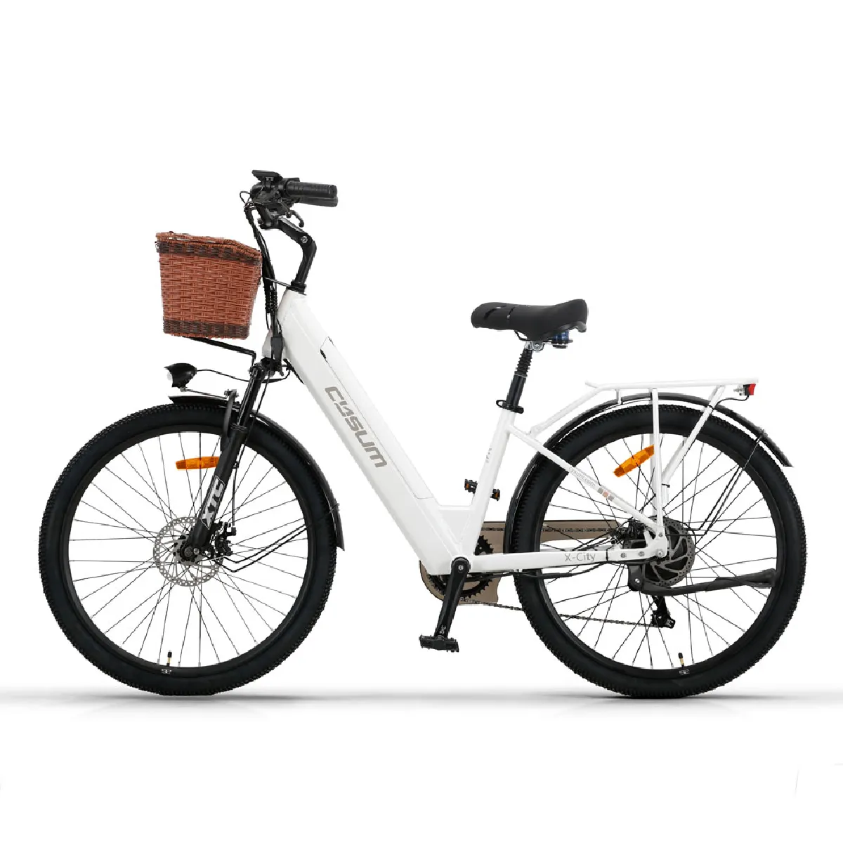 Commentaire vendeur : Le vélo électrique Cysum X-City est le compagnon idéal pour vos déplacements urbains et escapades loisirs, alliant performance, design et praticité. Équipé d’un moteur 48V 250W et d’une batterie lithium 48V 10,4Ah (1500 cycles de charge), il offre une autonomie de 60-80 km, suffisante pour tous vos trajets. Son cadre aluminium léger (27 kg) avec passage bas facilite les montées/déscentes, tandis que les pneus 26x1,95 pouces s’adaptent à divers terrains. La transmission Shimano 7 vitesses assure fluidité sans effort, et le panier osier ajoute charme et rangement pratique. Emballé compactement, ce vélo unisexe allie sécurité, efficacité énergétique et style. Idéal pour trajets quotidiens ou balades en campagne, il séduit par son excellent rapport qualité-prix et polyvalence, alliant économie et respect de l’environnement.