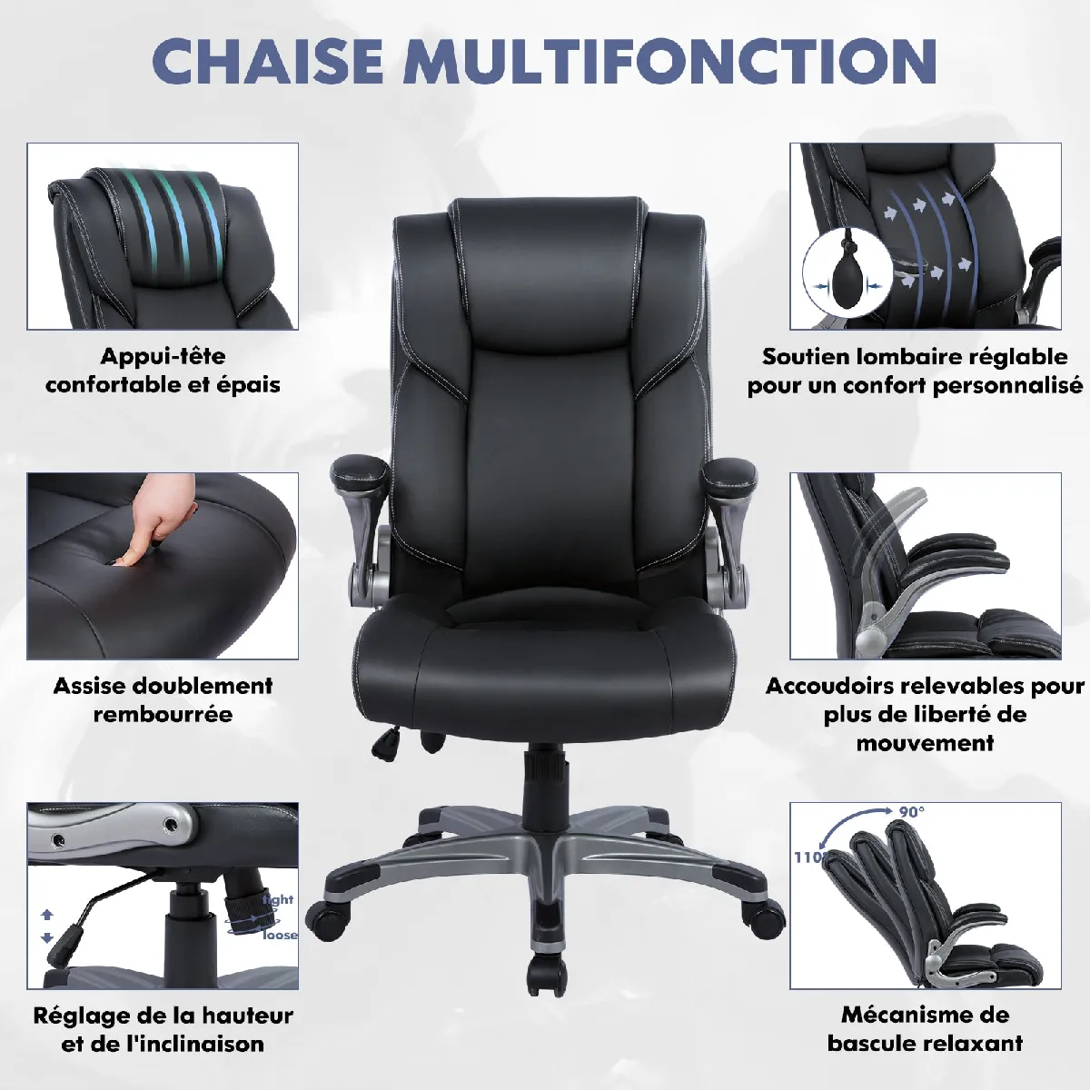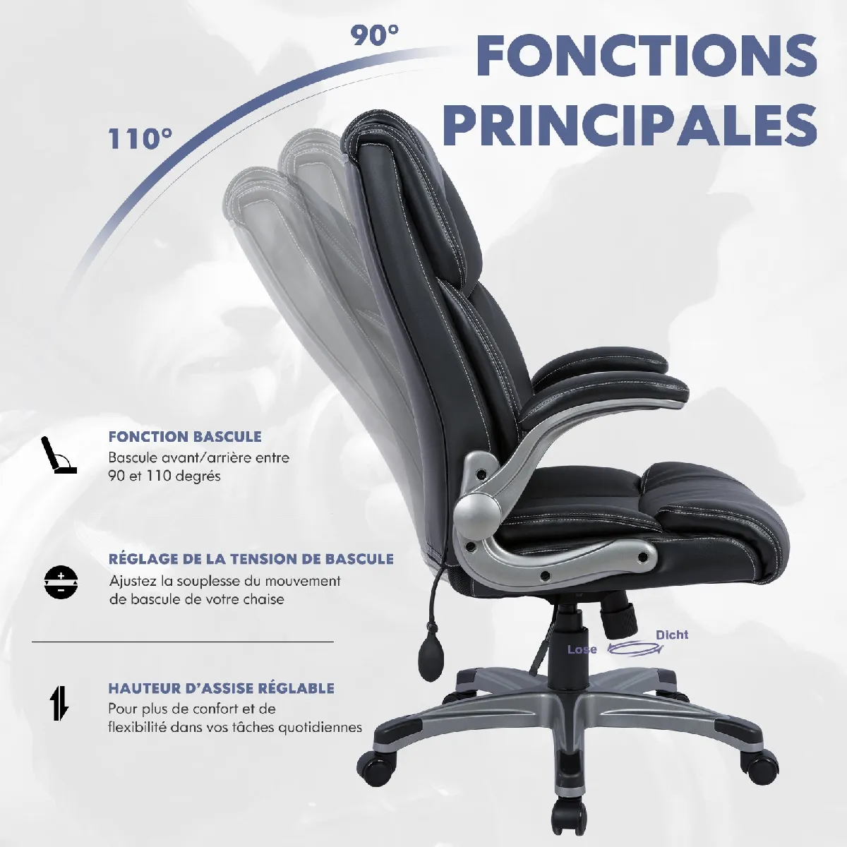 Smartue Chaise de bureau - Chaise de Bureau ergonomique en similicuir,Dossier Inclinable, Accoudoirs et Hauteur Réglables - Noir |