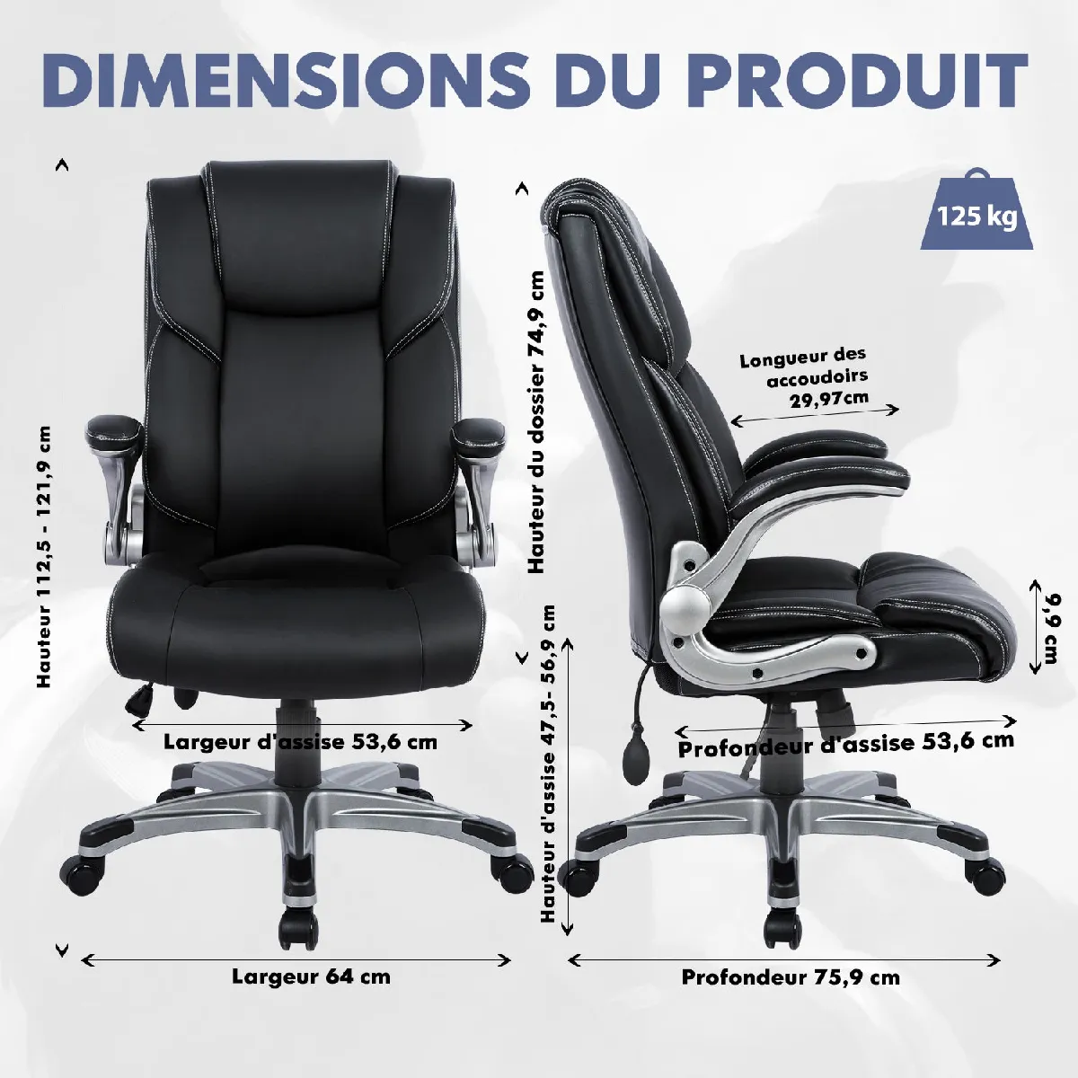 - Hauteur réglable du fauteuil : de 112,5 cm à 121,9 cm
