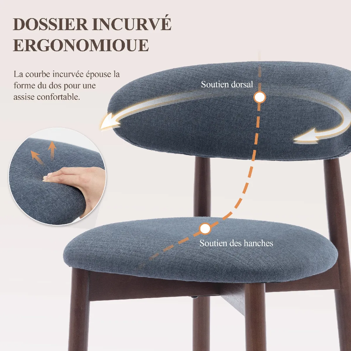 Le siège rembourré offre un excellent soutien, résiste à l'affaissement et garantit un confort durable, même lors d'utilisations prolongées.