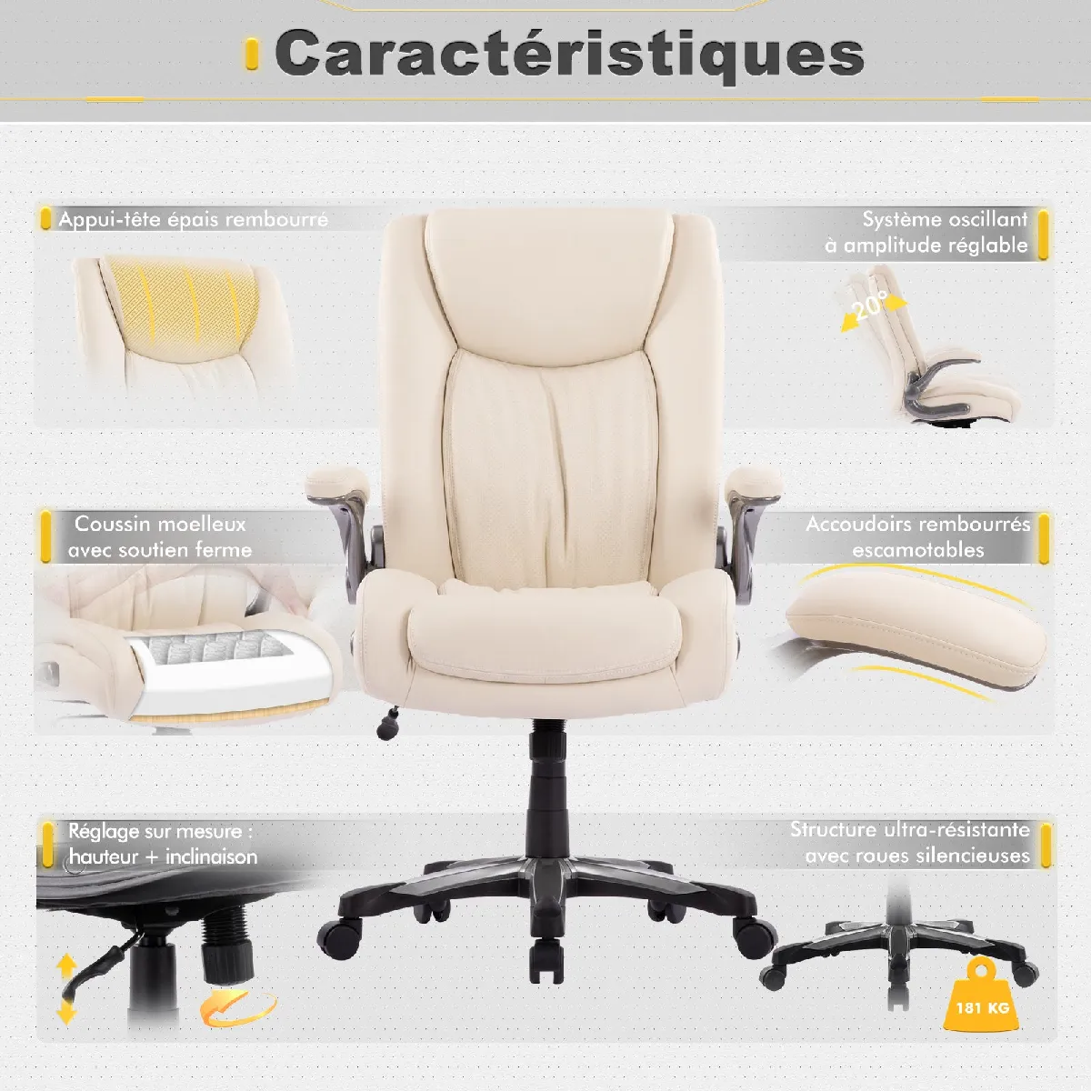 Smartue Chaise de bureau – Chaise de bureau ergonomique Robuste, charge maximale 181 kg - Beige