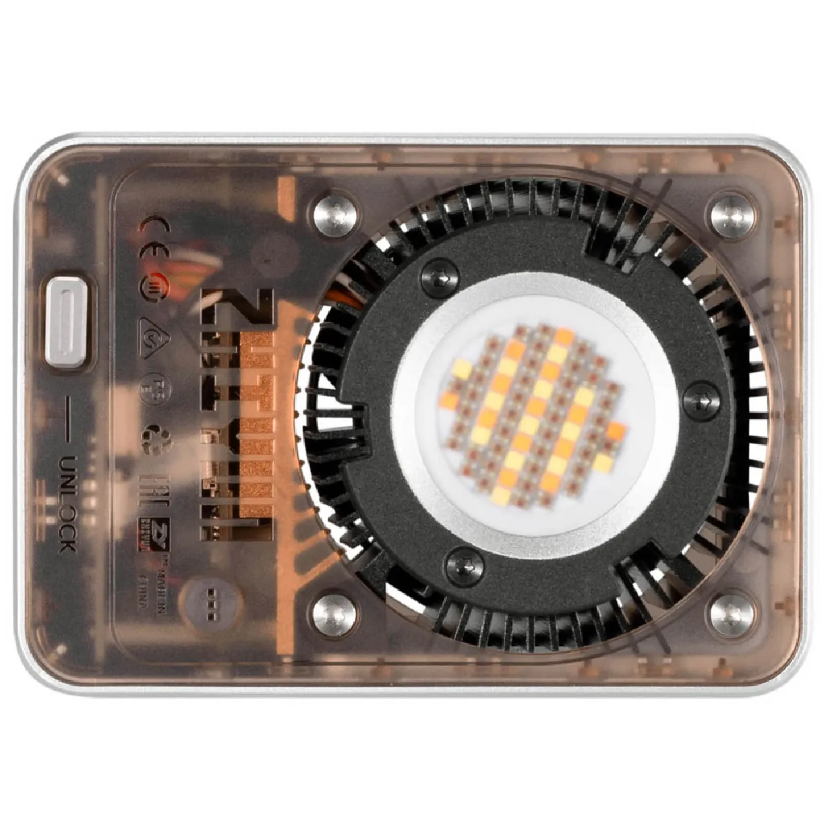 La torche Zhiyun Molus X60 RGB présente un format compact (100 x 71 x 56 mm) et un poids plume de 319 g (sans batterie poignée), facilitant le transport et l'intégration sur stabilisateurs, rigs ou perches.