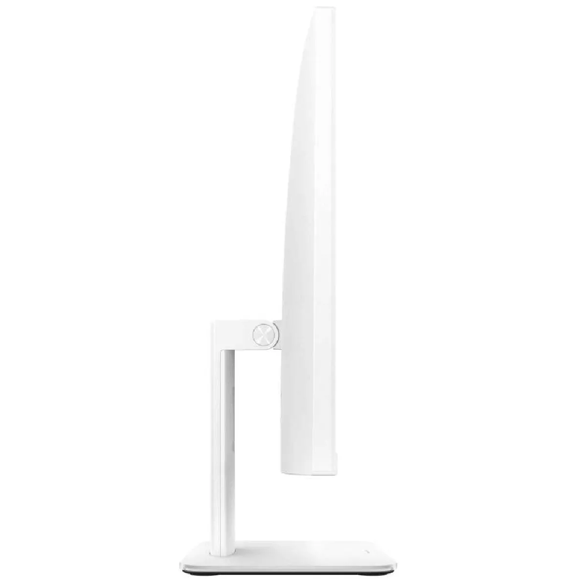 - Design et ergonomie : couleur blanche, pied réglable en hauteur, canal de gestion des câbles vertical dans le pied, profil slim