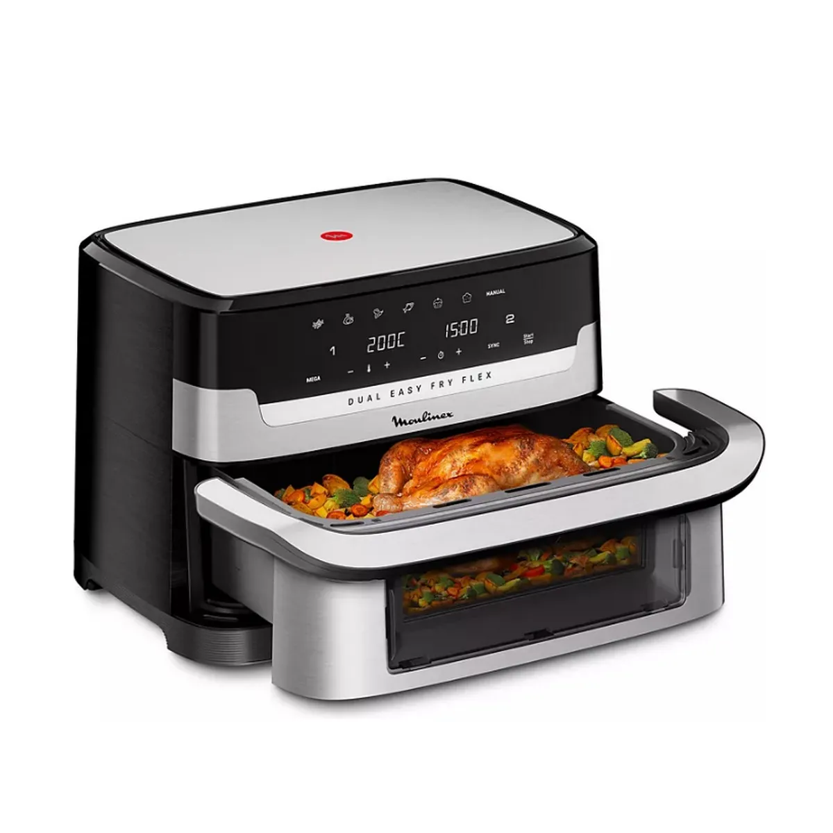 Easy Fry Dual Flex combine la polyvalence de deux zones de cuisson indépendantes à la praticité d'une méga zone. Son secret ? Son séparateur amovible ingénieux qui permet de passer d'une à deux zones de cuisson.